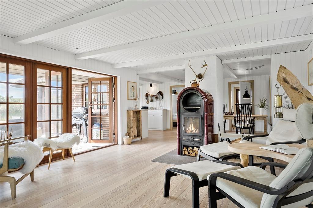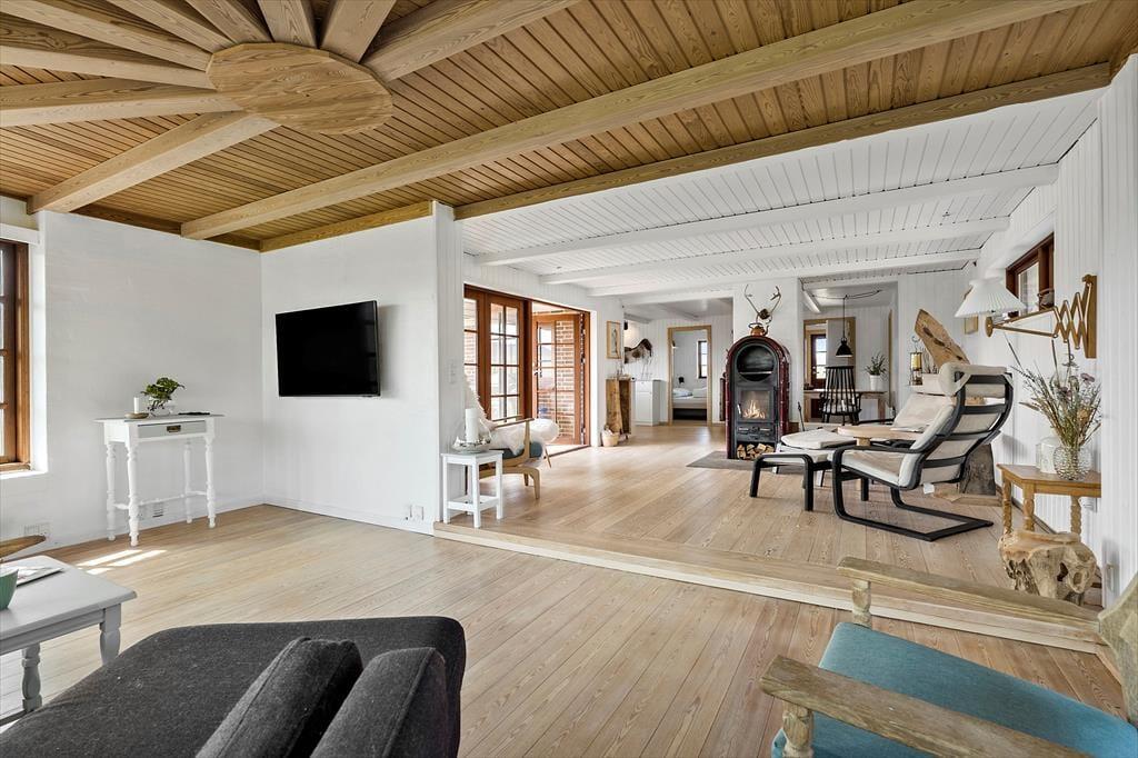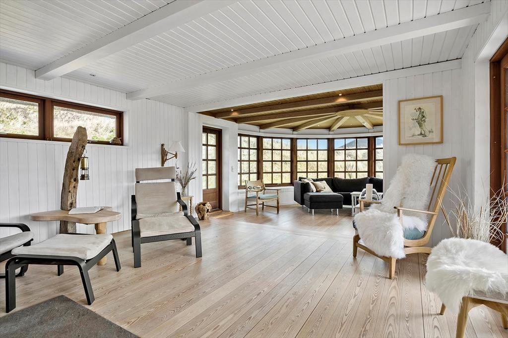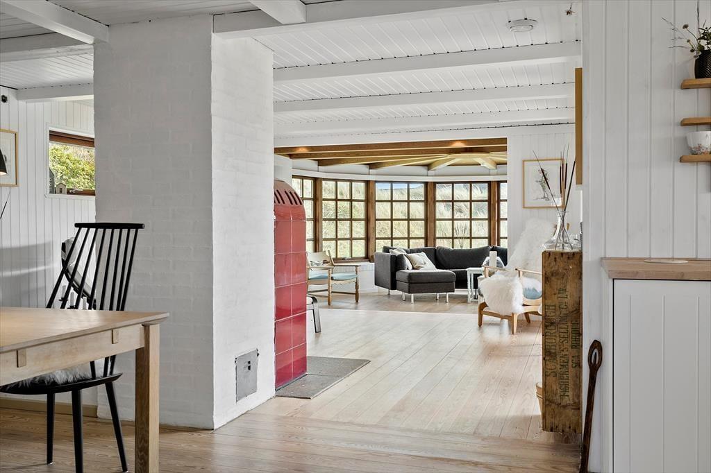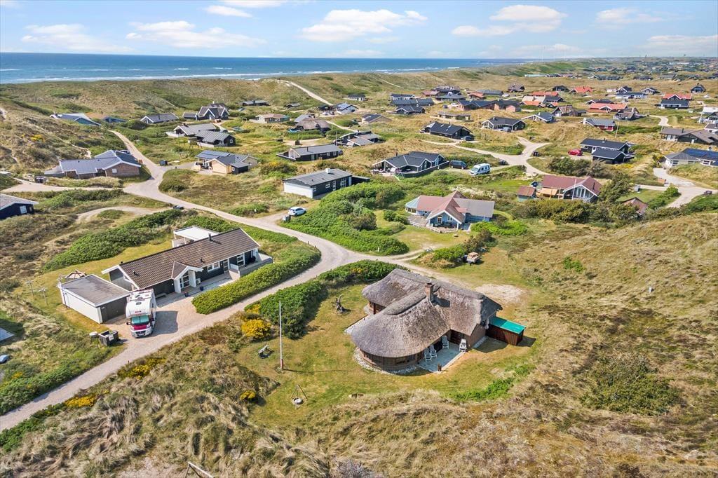 Das Sommerhaus liegt ruhig an einer geschlossenen Straße, die direkt zu den Dünen und dem schönen Sandstrand von Aargab führt. Unabhängig von der Jahreszeit ist es wunderbar, so nah an der Küste zu leben, denn die Nordsee sieht bei jedem Wetter toll aus – und es liegt natürlich ganz bei Ihnen, ob Sie Lust auf ein Bad haben oder lieber am Strand bleiben möchten, um zu spielen oder spazieren zu gehen. Hier am Holmsland Klit haben Sie auch reichlich Gelegenheit zum Surfen und für andere Wassersportarten, unter anderem im Ringkøbing Fjord, der auf der anderen Seite der schmalen Landenge auf Sie wartet. Wenn Sie nach Norden fahren, erreichen Sie schnell Hvide Sande, ein gemütliches Fischerdorf mit einer beeindruckenden Hafenumgebung und einer guten Auswahl an Restaurants und Geschäften