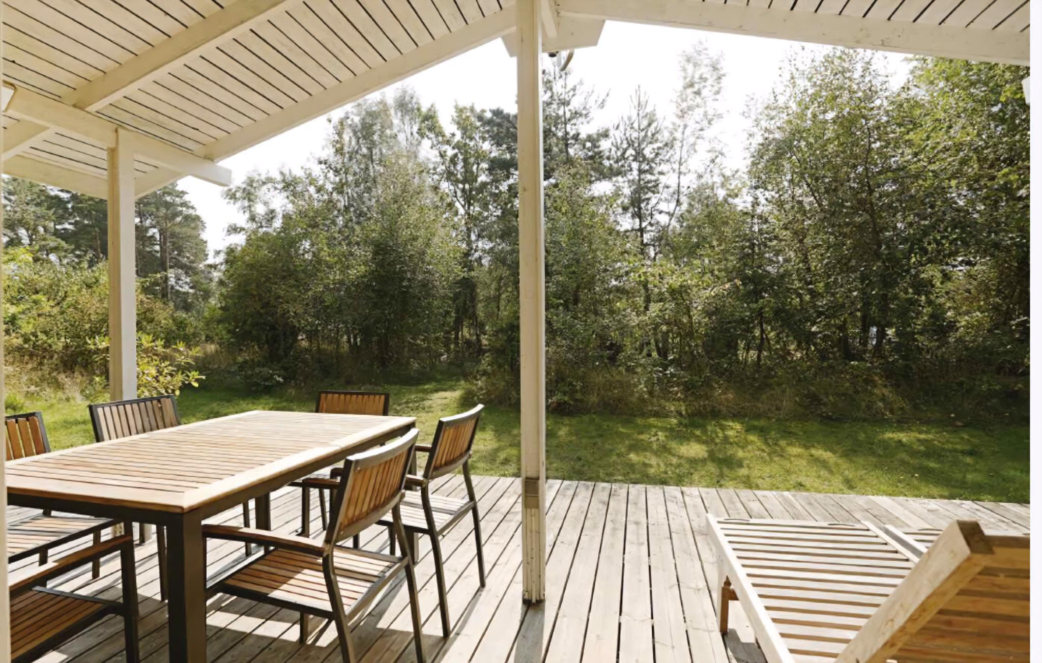Gemütliches Holzferienhaus nahe kinderfreundlichem Strand in Aakirkeby mit Terrasse und Holzofen für entspannte Urlaubstage.