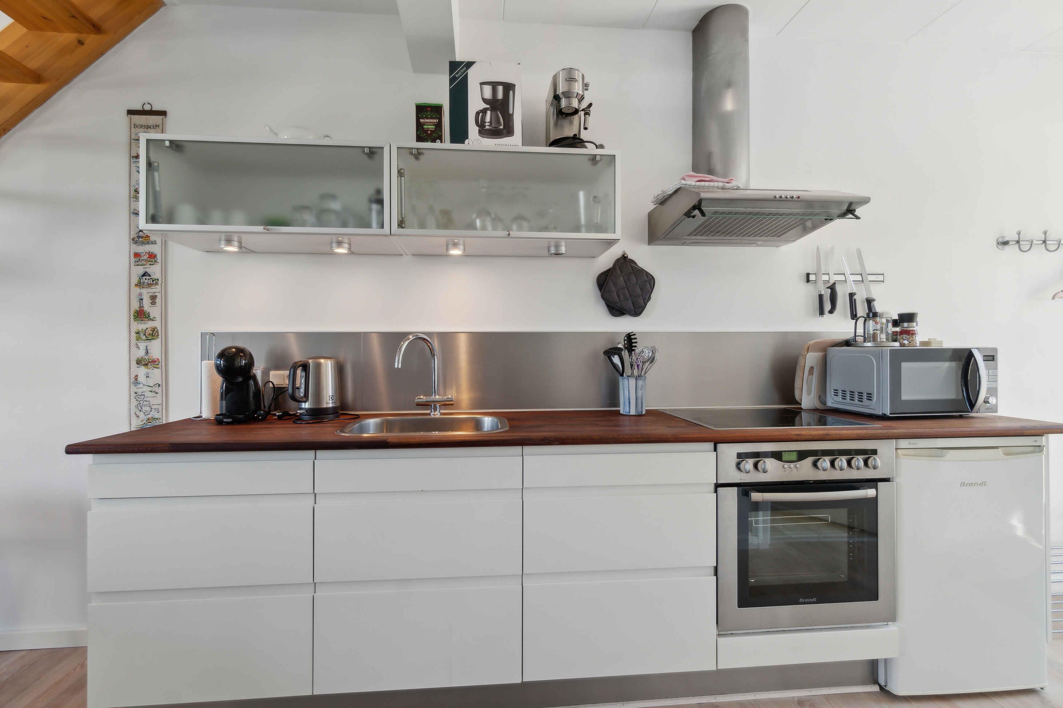 Genießen Sie Ihren Urlaub in dieser charmanten und gut gepflegten Ferienwohnung, ideal für vier Personen. Das Haus ist Teil eines ehemaligen Bauernhofs mit mehreren Ferienwohnungen und bietet eine gemütliche Atmosphäre. Vom Apartment aus haben Sie einen Blick auf den beheizten Gemeinschaftspool. Die Unterkunft ist 66 m² groß und erstreckt sich über zwei Etagen. Im Erdgeschoss befinden sich das Wohnzimmer, die Küche und das Badezimmer, während beide Schlafzimmer im Obergeschoss liegen. Eine Wärmepumpe sorgt das ganze Jahr über für ein angenehmes Raumklima. Im Außenbereich können Sie Ihre Ferien auf den Terrassen auf beiden Seiten des Hauses genießen. Es gibt genügend Platz zum Entspannen und für Mahlzeiten im Freien zu jeder Tageszeit. Ein großer gemeinschaftlicher Pool lädt in den Sommermonaten zum erfrischenden Baden ein. Der Pool ist vom 15. Juni bis zum 15. September beheizt und verlängert so die Badesaison. Die Umgebung bietet eine wunderschöne Natur und spannende Erlebnisse. Nur eine kurze Autofahrt entfernt befinden sich breite Sandstrände, ideal für lange Spaziergänge, Schwimmen und Entspannung am Meer. Die Region lädt zu einem aktiven Urlaub ein. Unternehmen Sie eine Radtour durch bewaldete Wege, besuchen Sie historische Sehenswürdigkeiten oder genießen Sie lokale Spezialitäten in gemütlichen Cafés und Restaurants. Bornholm ist bekannt für sein einzigartiges Licht und seine dramatische Felsküste. Erkunden Sie malerische Fischerdörfer, Kunsthandwerker und Märkte mit regionalen Köstlichkeiten. Dieses Ferienhaus vereint Komfort, hervorragende Ausstattung und eine Lage, die es einfach macht, das Beste von Bornholm zu erleben. HINWEIS: VERBRAUCH IST IM PREIS INKLUSIVE