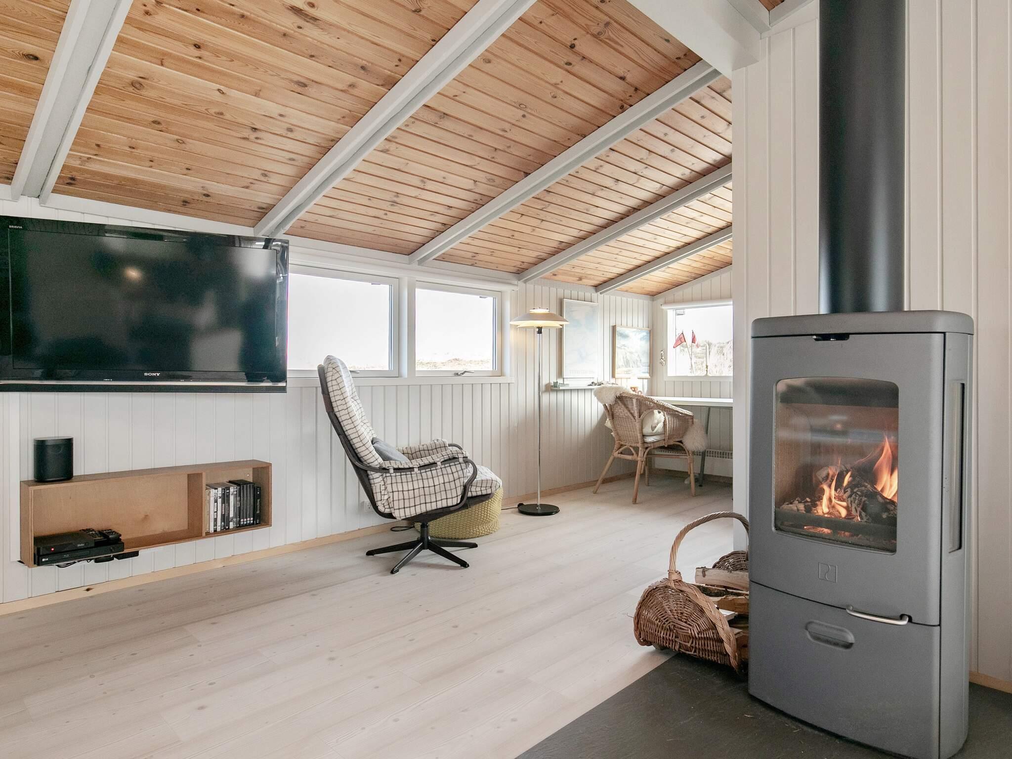 Das Herzstück des Hauses ist die große, gut ausgestattete Wohnküche mit modernen Annehmlichkeiten wie einem Kaffeevollautomaten und einem Geschirrspüler. Angrenzend an die Küche befindet sich das gemütliche Wohnzimmer mit schönen, bequemen Möbeln und einem Holzofen. Das Haus verfügt außerdem über einen Arbeitstisch mit Blick in die wunderschöne Natur.