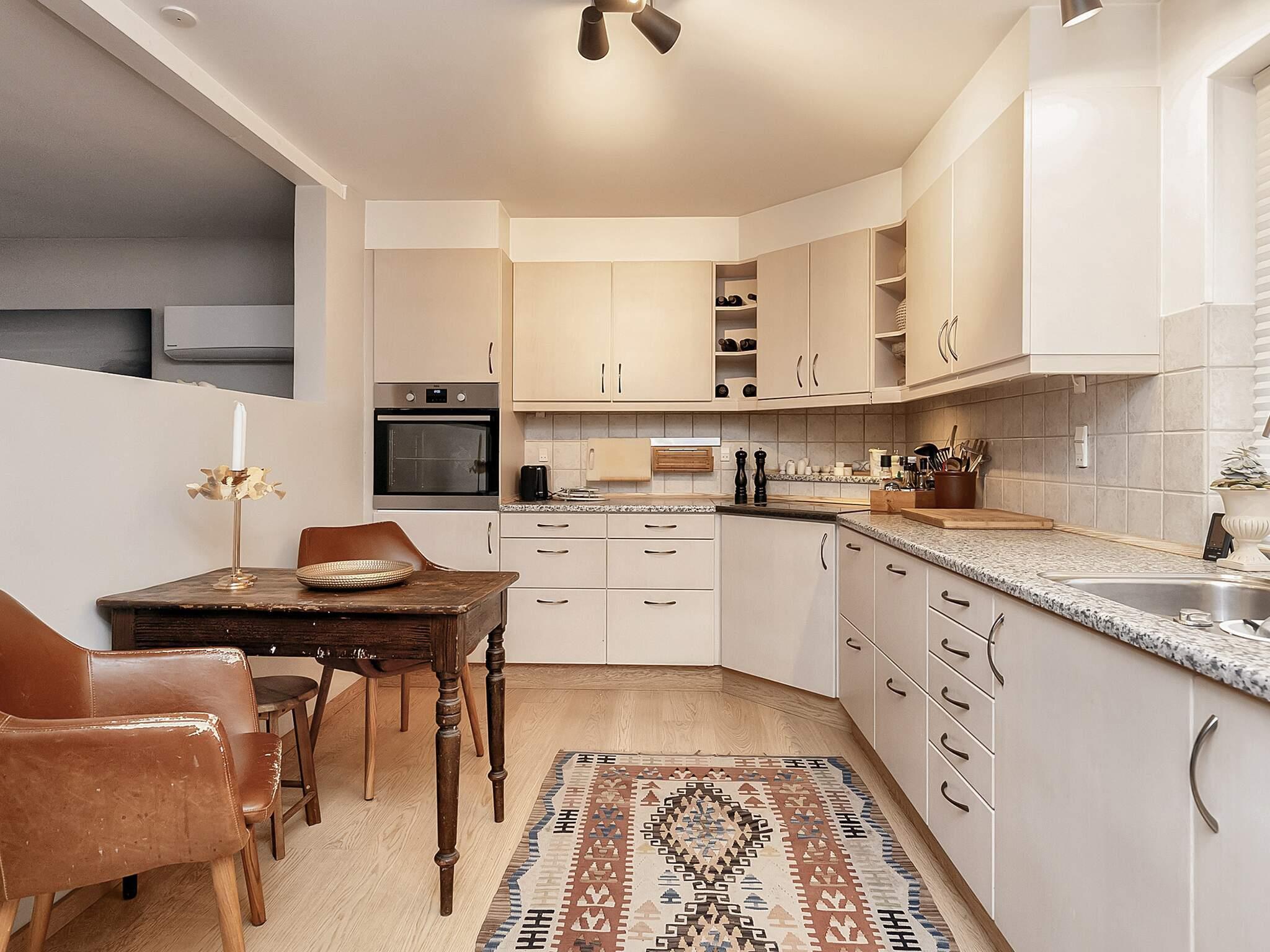 Küche: Ofen, Kühlschr., Gefriertruhe 100-139 l., Mikrow., induktionskomfur, Kaffeem., Spülm., Waschm, Trockner
