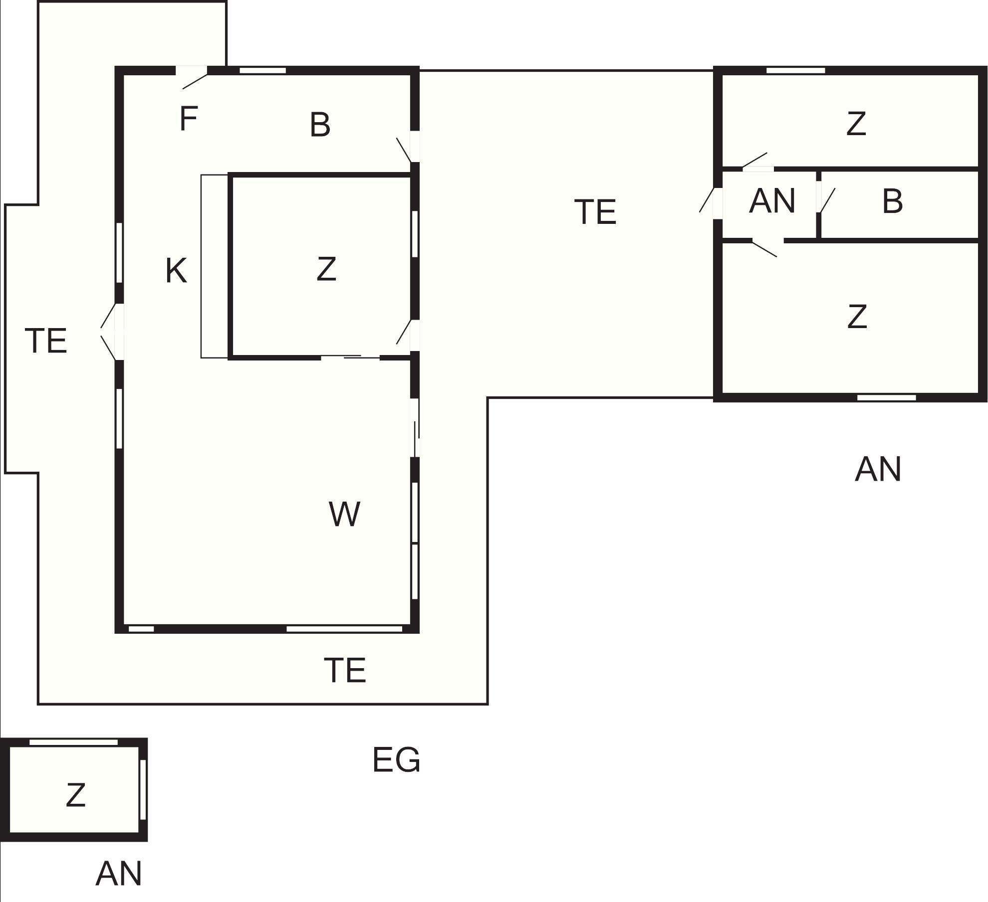 Ein angrenzender, 25 m² großer Anbau umfasst zwei gemütliche Zimmer mit jeweils einem Doppelbett und einem Etagenbett sowie ein Badezimmer mit Dusche. Hier finden die ganze Familie oder Freunde Platz, denn das Haus bietet insgesamt sechs Schlafplätze.