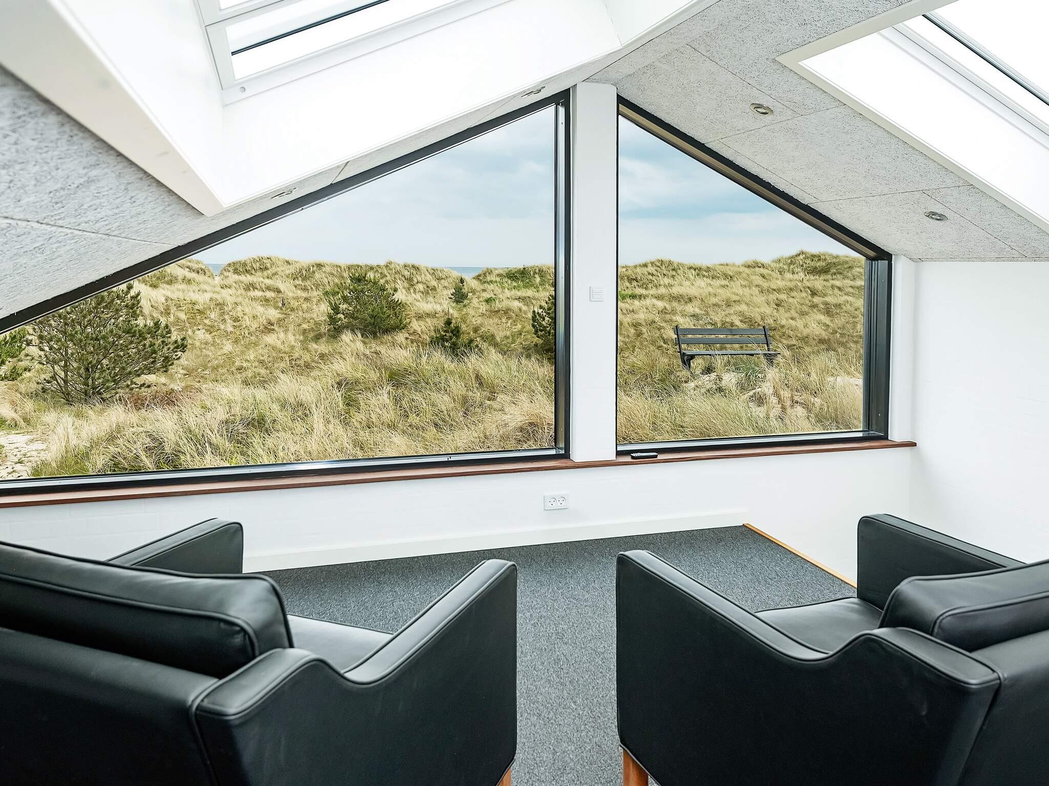 Ansprechendes, von Architektenhand individuell entworfenes und komplett renoviertes Ferienhaus mit allen erdenklichen modernen Annehmlichkeiten und ruhiger, attraktiver Lage, am Rande eines Ferienhausgebietes bei Ålbæk. Man hat hier Meerblick oben vom Wohnbereich im 1. Stock!