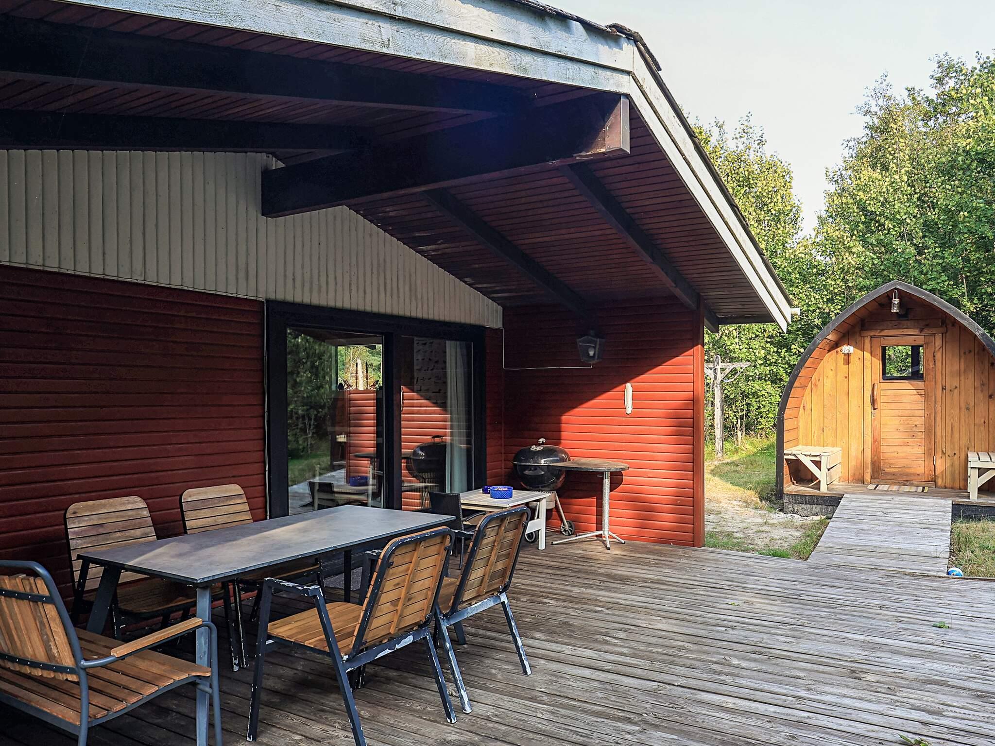 Und: Terrasse, überd. Terrasse, E-Heiz., Solarenergie, Luft-Luft-Wärmepumpe, Grill, Naturgrundst. m. Bäumen 2600 m2, gemischte Möblierung, Ferienhausgebiet