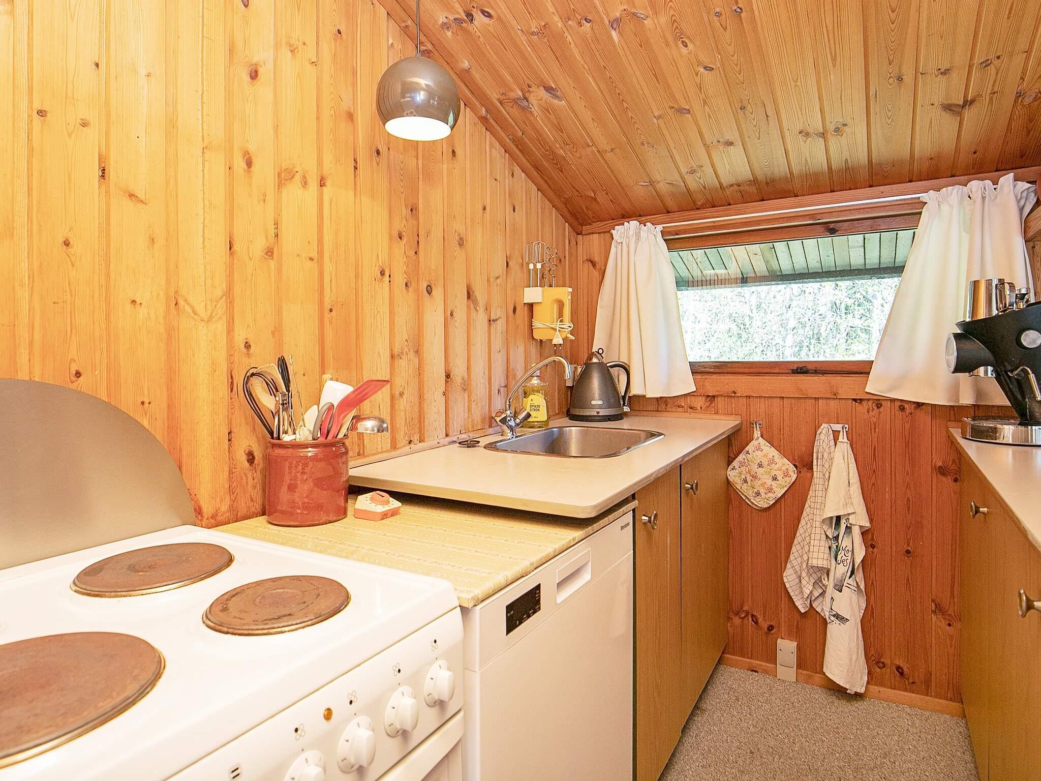 Das Ferienhaus ist eher einfach und zweckmäßig eingerichtet. Es hat zwei Schlafzimmer und einen offenen Küchen-/Wohnbereich mit Essecke und Zugang zur geschützten Terrassenfläche über Eck. Recht geräumiges Badezimmer mit u.a. Dusche und Waschmaschine. Zur Ausstattung gehören außerdem Chromecast verbunden mit einem Smart-TV. Auf dem Flachbildschirm lassen sich so mehr als 40 verschiedene Sender (sowohl skandinavische als auch einige deutsche) empfangen. Zudem Espressomaschine im Haus.