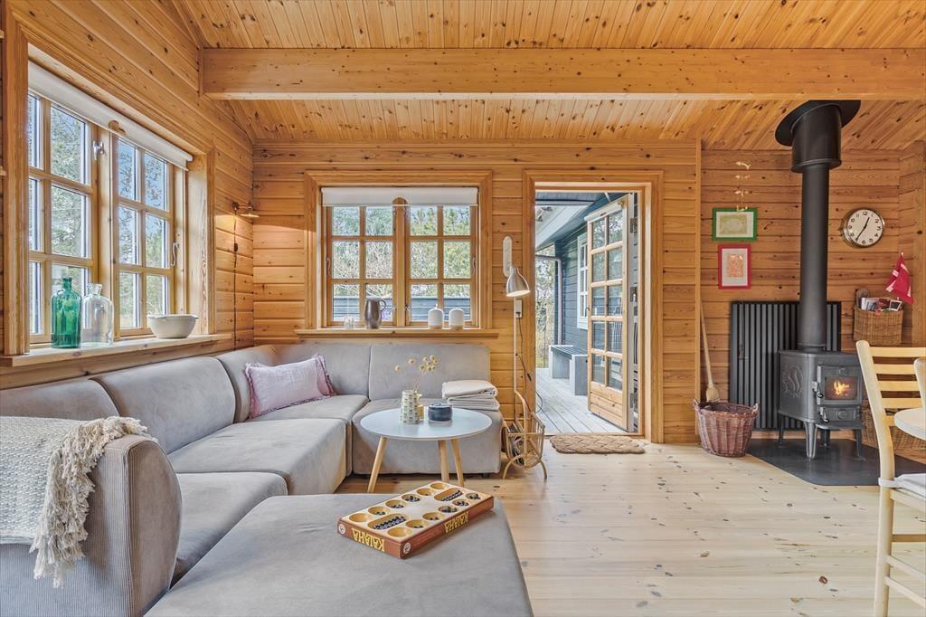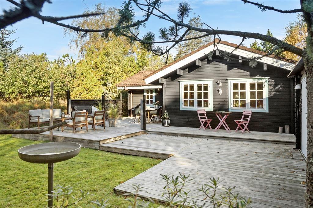 Das Ferienhaus liegt friedvoll platziert in einer Sackgasse, die an ein bewaldetes Gebiet grenzt. Dein Naturgrundstück wird ebenfalls durch Bäume geprägt. An die Südseite des Hauses schmiegt sich eine schöne Holzterrasse. Hier kannst du mit deinen Lieben in aller Ruhe und völlig ungestört sitzen, in der Sonne frühstücken und ein Mittagsschläfchen im Schatten des Sonnenschirms genießen. Abends lädt der hauseigene Grill zu gemütlichen Runden und stimmungsvollen Stunden ein. Während ihr euer Abendessen genießt, unterhalten euch garantiert die in den Bäumen sitzenden Vögel mit ihrem abendlichen Gesang.
