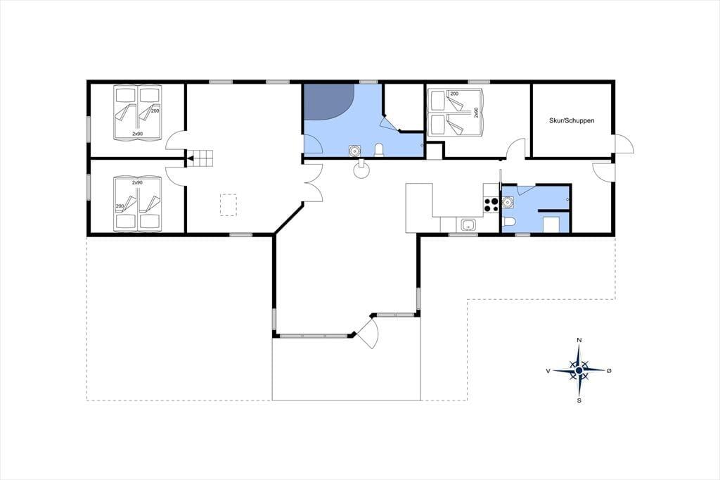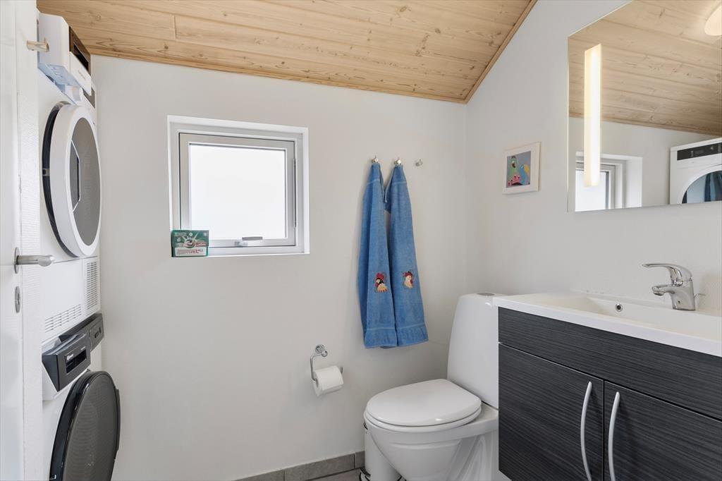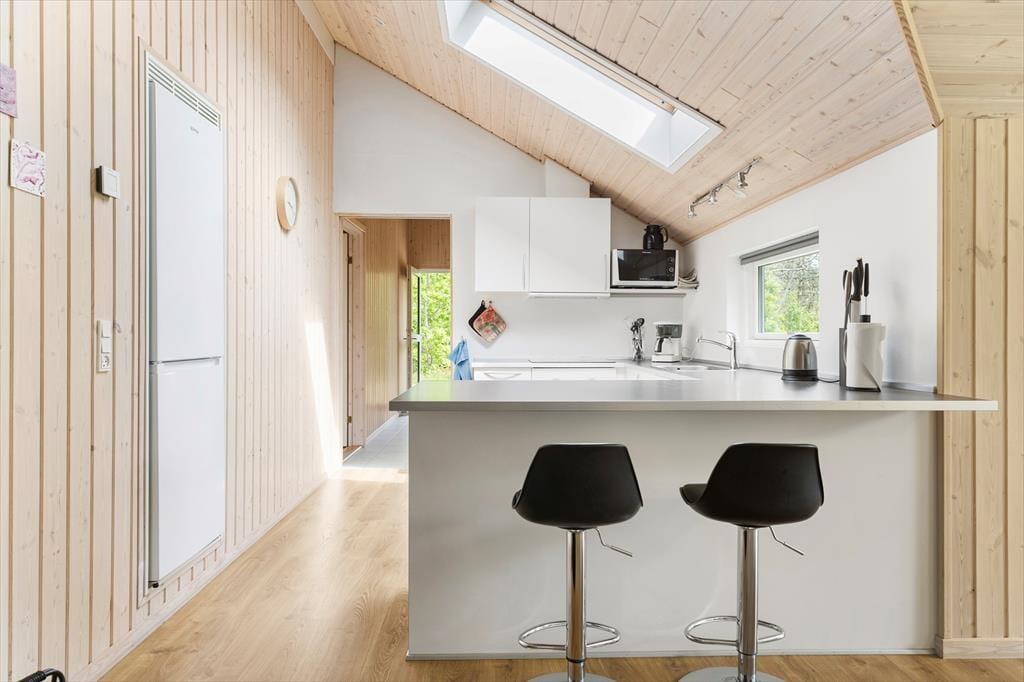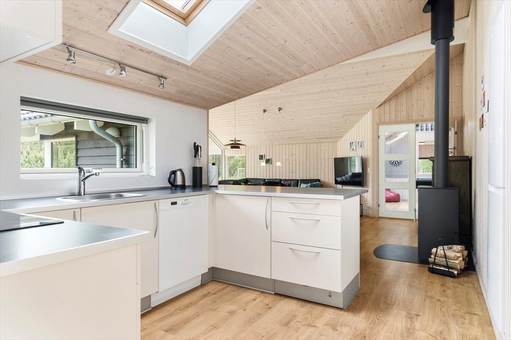 Das Ferienhaus versprüht Feriengefühl ab dem Moment, in dem du eintrittst. Das geräumige Wohnzimmer ist das Herzstück des Hauses und bietet mit seinem gemütlichen Kamin den perfekten Rahmen für gemeinsame Stunden nach einem erlebnisreichen Tag. Die helle und funktionale Küche lädt dazu ein, gemeinsam mit der Familie zu kochen. Eine gute Treppe führt auf den Hems, der perfekt für Kinder ist – ein kleiner Rückzugsort zum Spielen und Entspannen. Die Schlafzimmer sind auf Komfort und Ruhe ausgelegt, und das Badezimmer bietet alles, was man für einen angenehmen Aufenthalt benötigt.