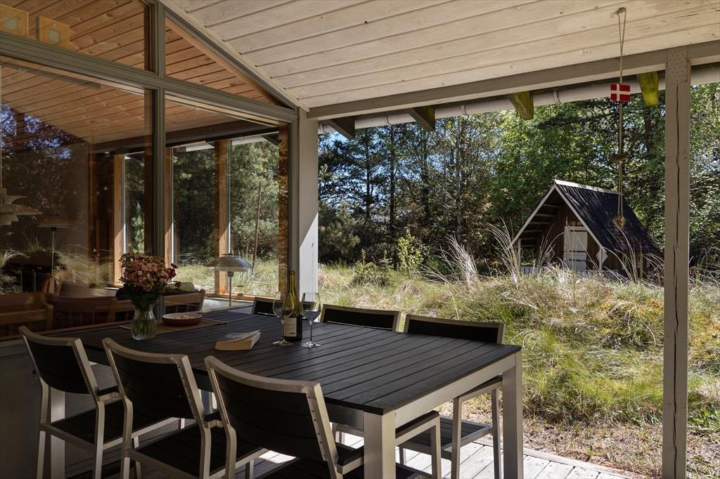 Das Ferienhaus verfügt über eine fantastische Terrasse, die fast um das gesamte Haus verläuft. Hier können Sie zu jeder Tageszeit ein sonniges Plätzchen finden – perfekt für den Morgenkaffee, zum Sonnenbaden oder für einen gemütlichen Grillabend unter freiem Himmel. Die Terrasse ist geräumig und geschützt, sodass Sie das Leben im Freien ungestört genießen können. Das Grundstück rund um das Haus bietet eine wunderschöne Kulisse zum Entspannen und Spielen, und wenn Sie Ihren Hund mitbringen, wird er sich ebenfalls wohlfühlen und das Gelände erkunden.