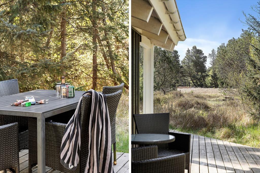 Draußen erwartet dich das Ferienhausleben von seiner ruhigsten Seite. Das Haus liegt auf einem uneinsehbaren Naturgrundstück mit hohen Bäumen und grüner Bepflanzung, die Privatsphäre und das Gefühl vermitteln, mitten in der Natur zu sein. Auf der Terrasse kannst du deinen Morgenkaffee im Sonnenschein und Vogelgezwitscher genießen, ein gutes Buch auf der Liege lesen oder alles für einen gemütlichen Grillabend unter freiem Himmel vorbereiten. Mehrere Terrassenbereiche bieten dir sowohl sonnige als auch schattige Plätze – je nach Stimmung und Tageszeit. Egal ob du entspannen oder draußen mit den Kindern spielen möchtest, hier findest du den passenden Rahmen. Es ist einer dieser Orte, an dem die Schultern automatisch entspannen und der Alltag in den Hintergrund tritt – zugunsten von Nähe, Natur und echter Erholung.