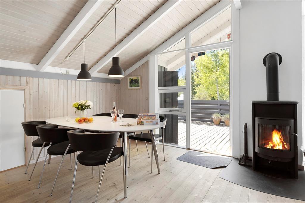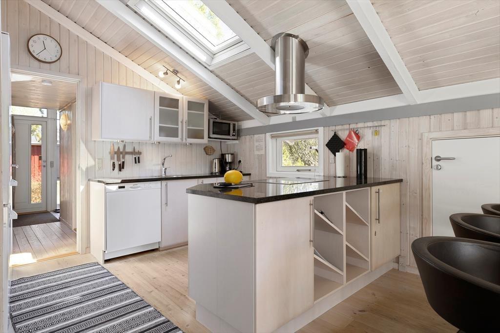 Die große Holzterrasse, die sich rund ums Haus zieht, ist ein echtes Highlight. Mehrere windgeschützte Ecken und sonnige Plätze bieten die perfekte Kulisse für entspannte Ferientage – sei es beim Morgenkaffee, einem Mittagsschläfchen in der Hängematte oder beim Grillabend unter dem nordjütländischen Sternenhimmel. Die grüne Bepflanzung sorgt für Privatsphäre und eine friedliche Atmosphäre, während der großzügige Außenbereich sowohl Rückzug als auch Geselligkeit ermöglicht. Hier können Sie das Leben unter freiem Himmel in vollen Zügen genießen.