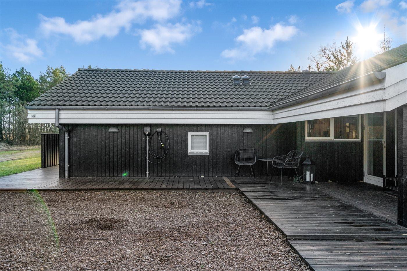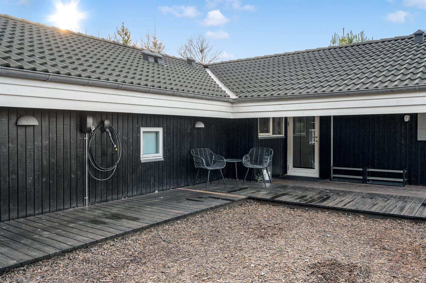 Die Ferienunterkunft liegt auf einem 864 m² großen Naturgrundstück. Die Entfernung zum Meer beträgt 2000 m. Die nächste Einkaufsmöglichkeit liegt 3000 m entfernt. In einem Abstand von 7000 m gibt es einen Golfplatz. Es steht ein offenes Terrassenareal zur Verfügung. Außerdem gibt es überdachte Terrasse. Schaukel. Sandkasten. Rutsche.Lagerfeuerstelle. Es steht ein Grill zur Verfügung. Es ist ein Ladestecker für Elektroautos installiert. Parkplatz auf dem Grundstück.