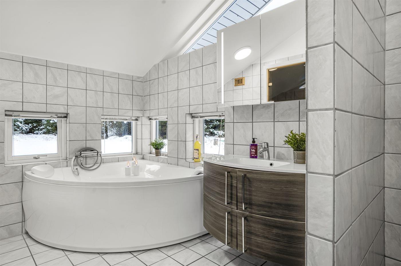 Es gibt 2 Badezimmer mit Duschnische und 2 Toiletten. Fußbodenheizung in 2 Badezimmern. Es steht eine Sauna zur Verfügung in der Sie sich so richtig entspannen können.