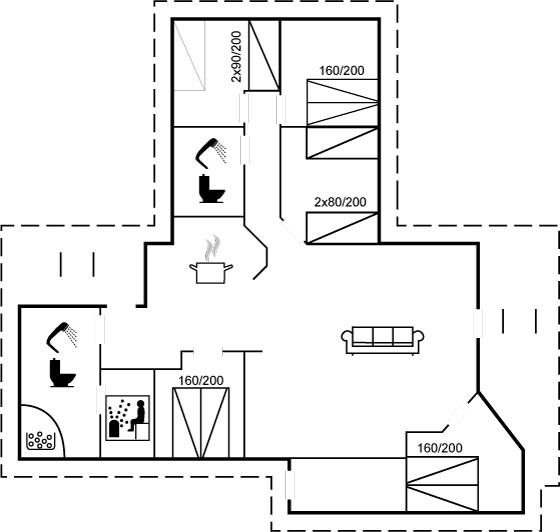 Die Schlafplätze verteilen sich auf 5 Schlafräume. 6 Schlafplätze in Doppelbetten. 4 Schlafplätze in Einzelbetten. Ferner stehen 2 Kinderbetten zur Verfügung.
