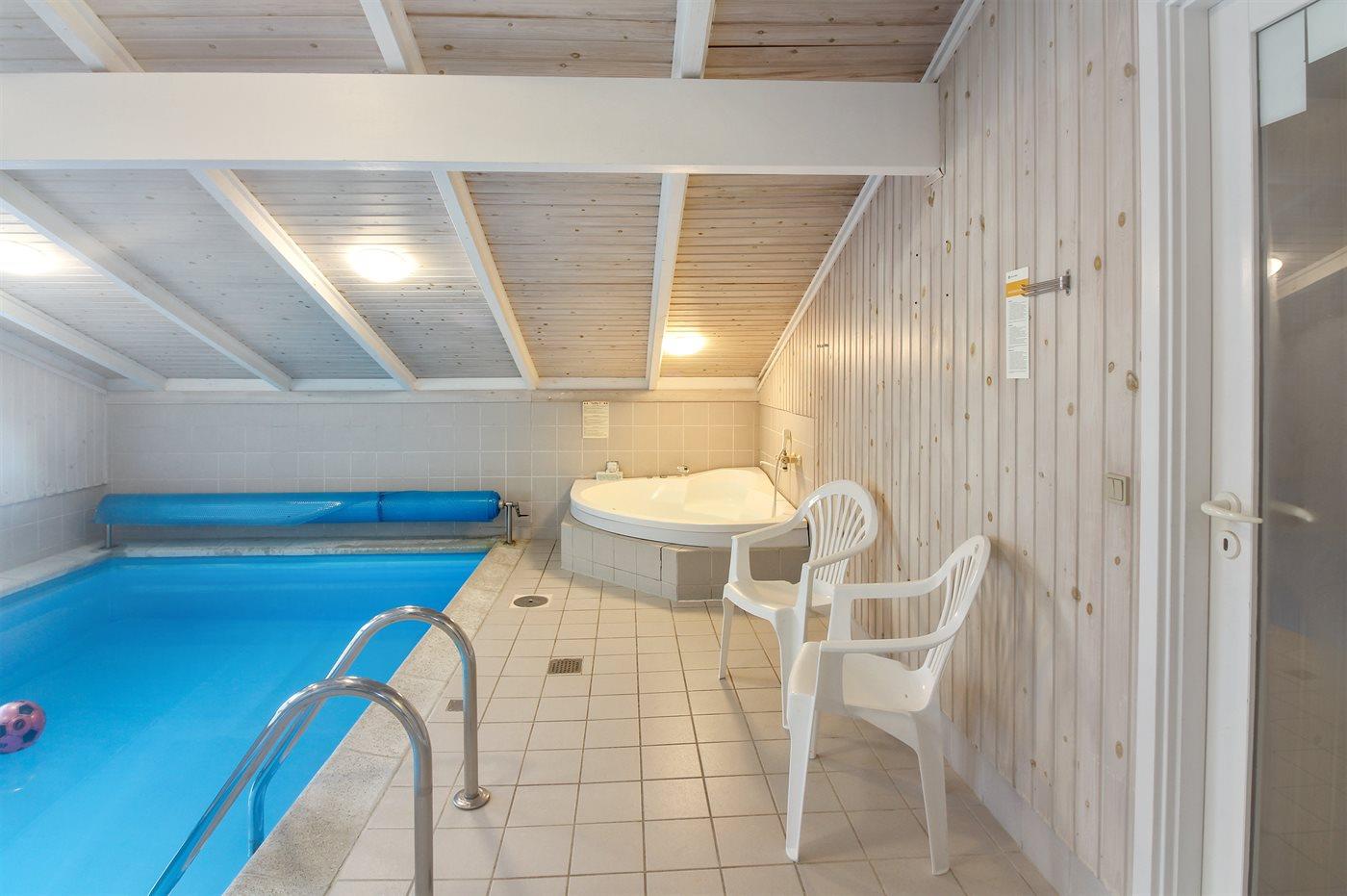 Schöne Pool-Abteilung mit Swimmingpool (6,0 x 4,0 x 1,6 M) mit Gegenstromanlage und Rutsche, Zutritt zur Sauna sowie zu einem netten Badezimmer mit Fußbodenheizung und Duschnische. Zusätzliches Badezimmer mit Fußbodenheizung und Duschnische sowie kombinierte Waschmaschine/Wäschetrockner. Die Schlafplätze des Hauses verteilen sich auf 1 Zimmer mit Doppelbett, 1 Zimmer mit 2 Einzelbetten sowie 1 Zimmer mit 2 Etagenbetten. Ferner offenes Obergeschoss sowie Kinderbett und Kinderhochstuhl zur Verfügung. Holzböden, jedoch Klinkerböden in der Pool-Abteilung sowie in den Badezimmern.
