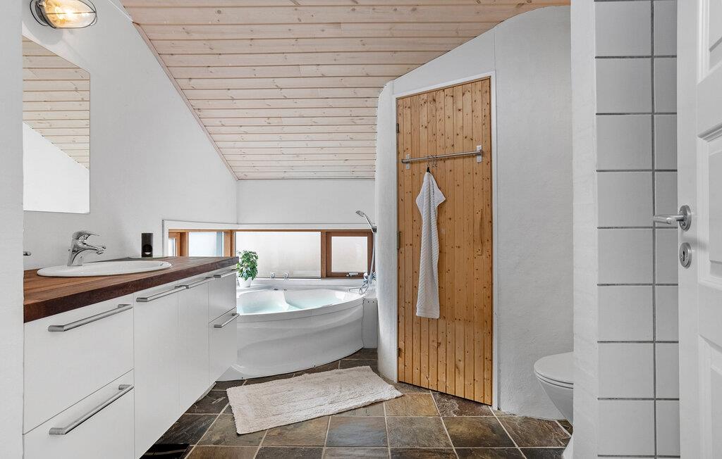 Freuen Sie sich auf erholsame Tage in diesem komfortablen Ferienhaus mit Sauna und Whirlpool in Strandnähe.