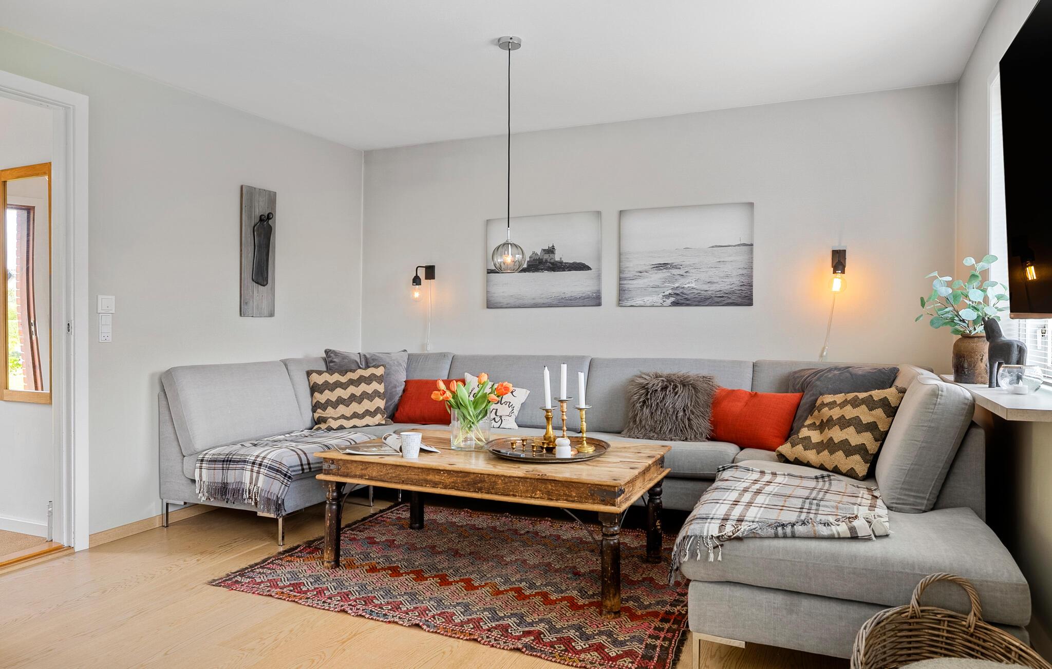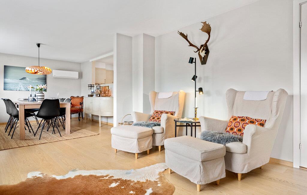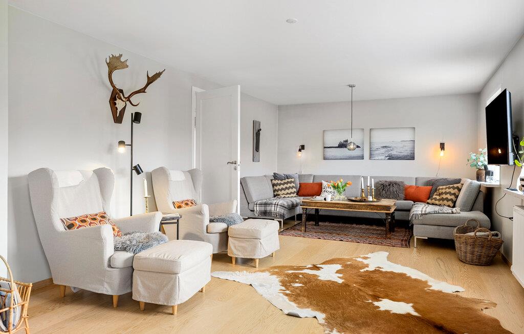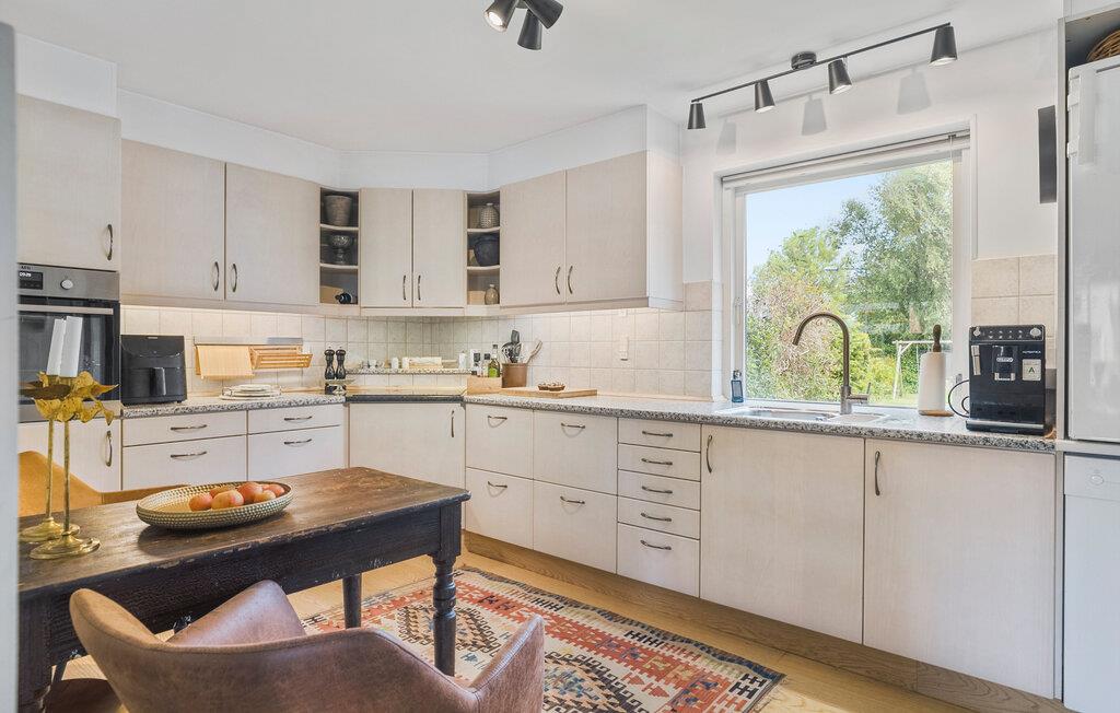 Treten Sie ein in den hellen Wohnbereich, der mit einer großen Sofaecke, bequemen Sesseln und stilvollen Details ausgestattet ist. Lassen Sie den Tag bei einem guten Buch oder einem Film ausklingen oder lassen Sie einfach mal die Seele baumeln. Kochen Sie in der großzügigen, gut ausgestatteten Küche mit viel Arbeitsfläche und modernen Geräten und genießen Sie Ihre Mahlzeiten im angrenzenden Essbereich.