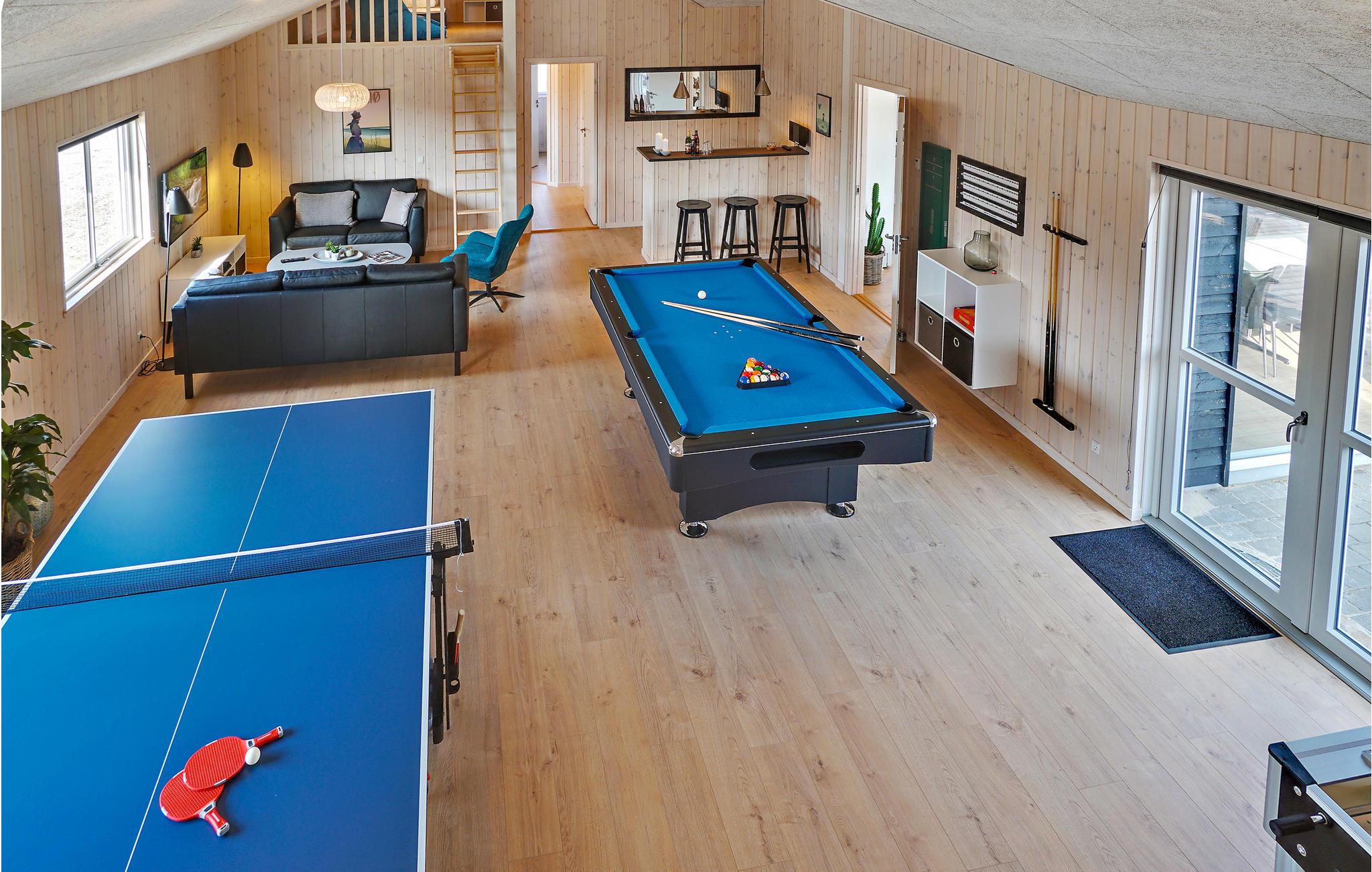 Im schönen Ferienhausgebiet des kleinen Hafenortes Ålbæk, südlich von Skagen, liegt dieses fantastische Luxushaus mit vielen Unterhaltungsmöglichkeiten. Das Haus besitzt einen schönen Poolbereich mit eigenem Swimmingpool, Rutsche, Volleyballnetz und großen Whirlpool. Im Aktivitätsraum steht einer der insgesamt 3 TV-Geräte, die es im Haus gibt, einen Billardtisch, Tischtennis, Kicker und eine PlayStation 4.