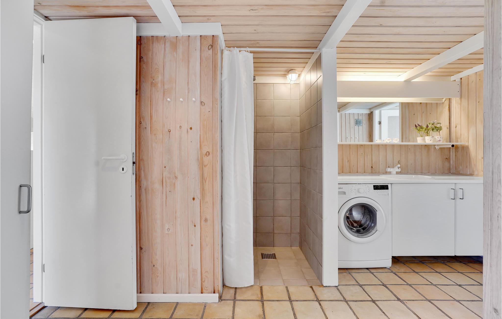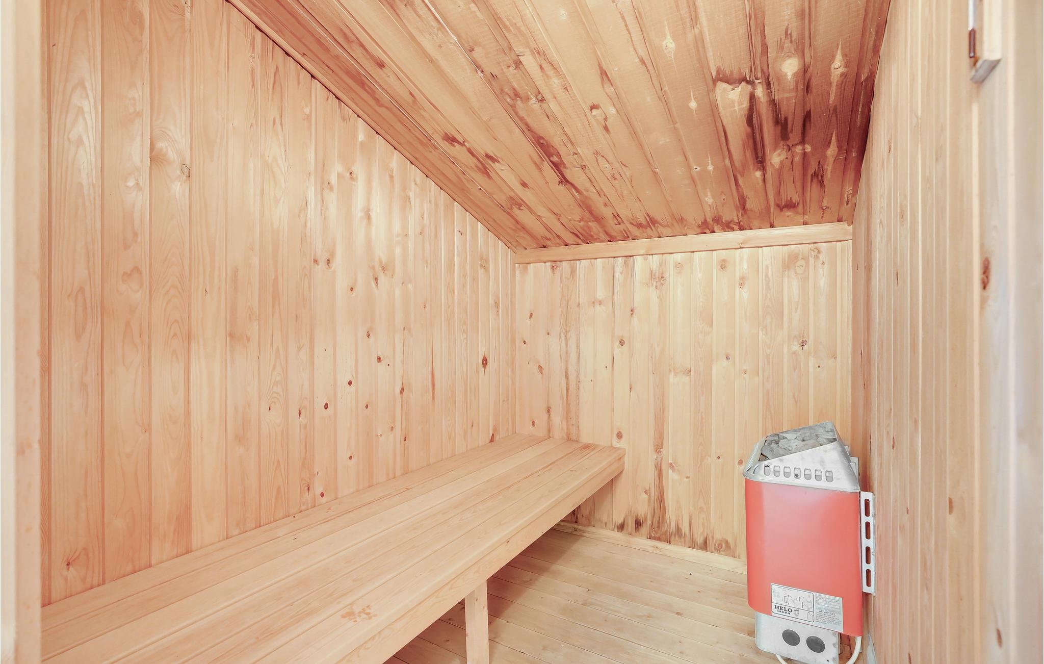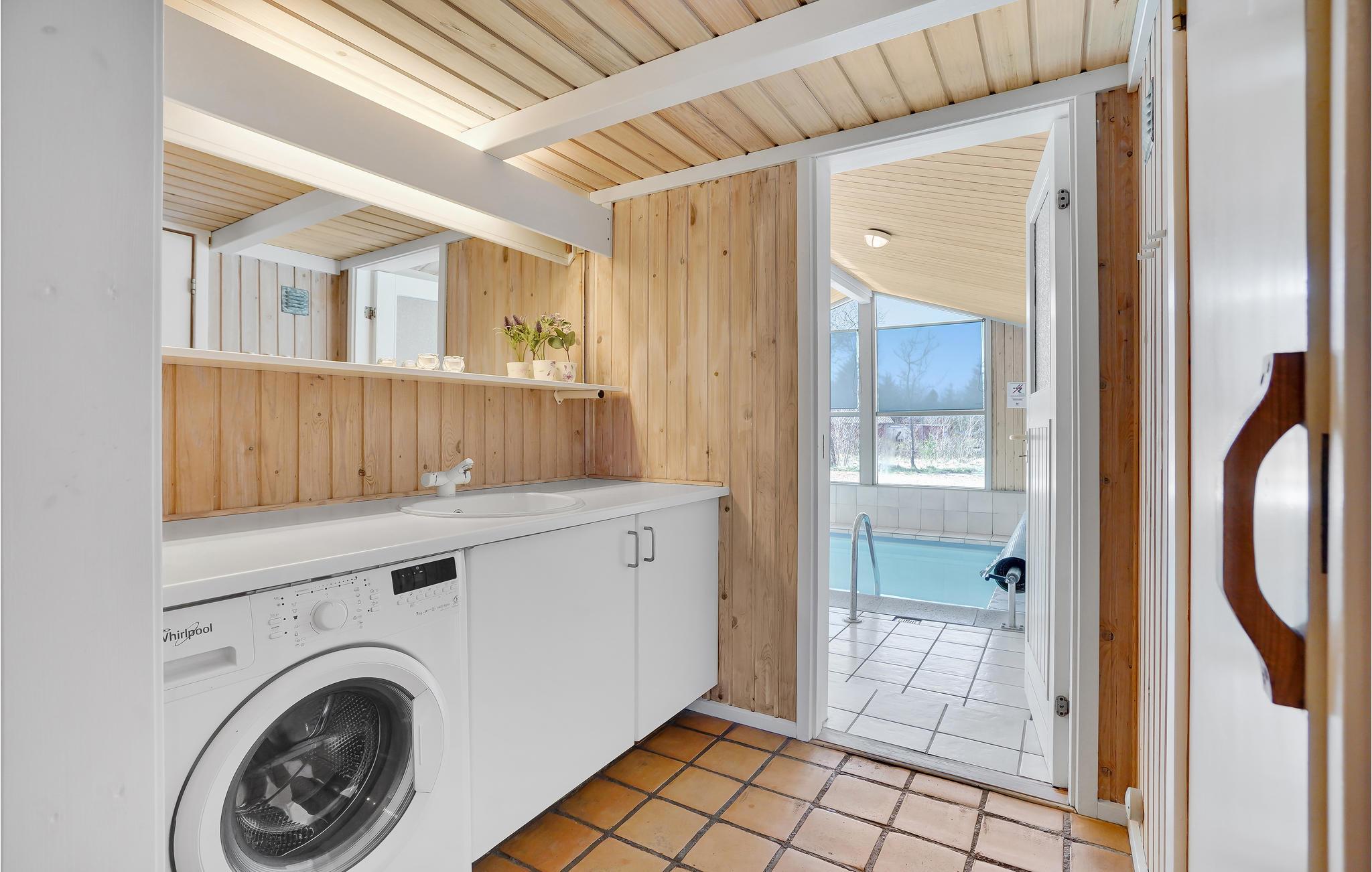Der modern möblierte Wohnraum ist mit Panoramafenstern ausgestattet und daher tagsüber lichtdurchflutet. Das große Badezimmer ist mit Fußbodenheizung, einem Whirlpool und einer eigenen Sauna ausgestattet. Von hier haben Sie Zugang zum eigenen Poolbereich, der einen 17 m² großes Becken, so dass Sie hier bei Wind und Wetter Badespaß erleben können. Toilette und Waschbecken liegen separat und wie in der Küche ist hier auch der Boden beheizbar. Das Haus liegt etwas nördlich vom gemütlichen Fischerdorf Ålbæk. Nahe Skagen, Råbjerg Mile und Golfplatz.