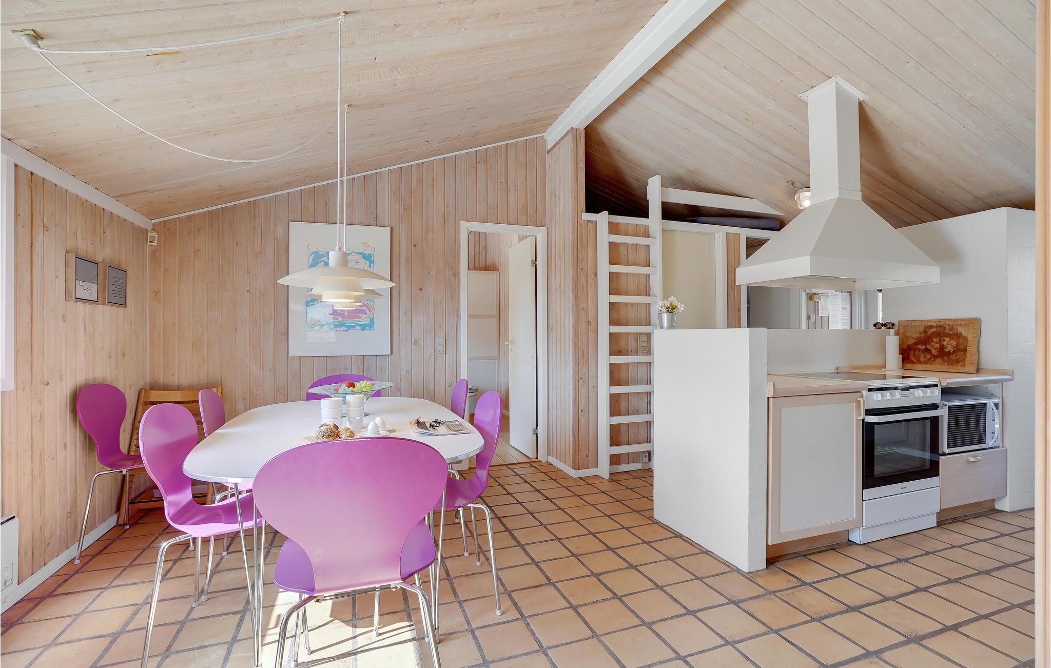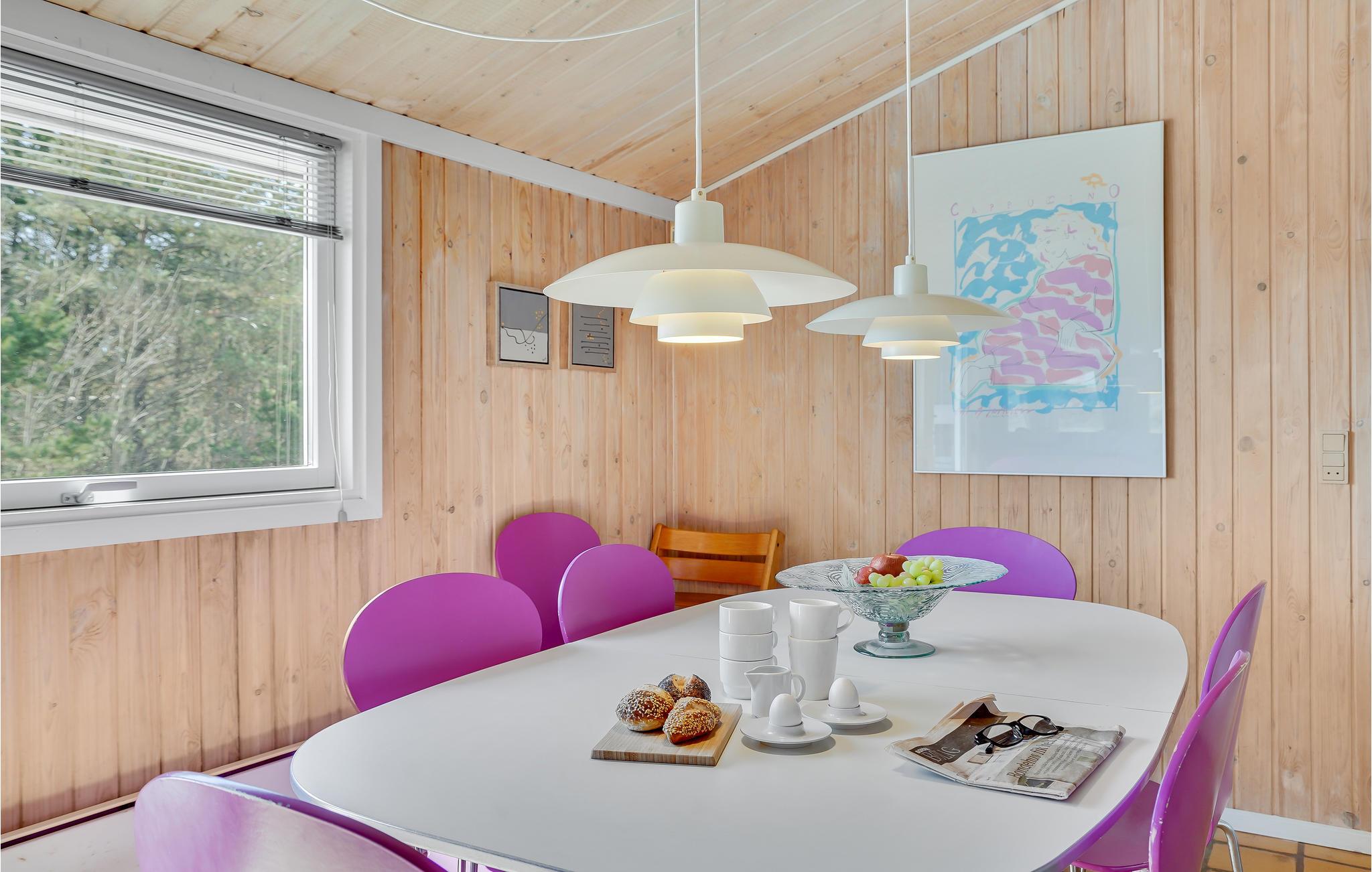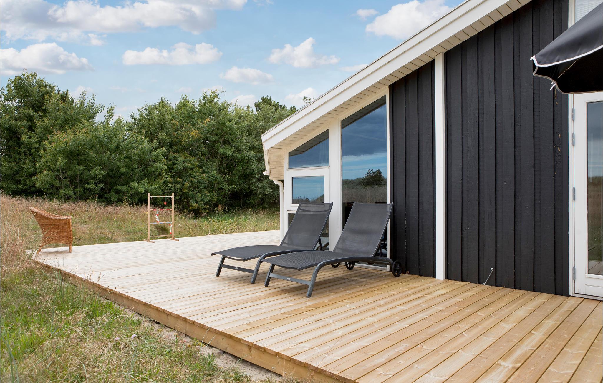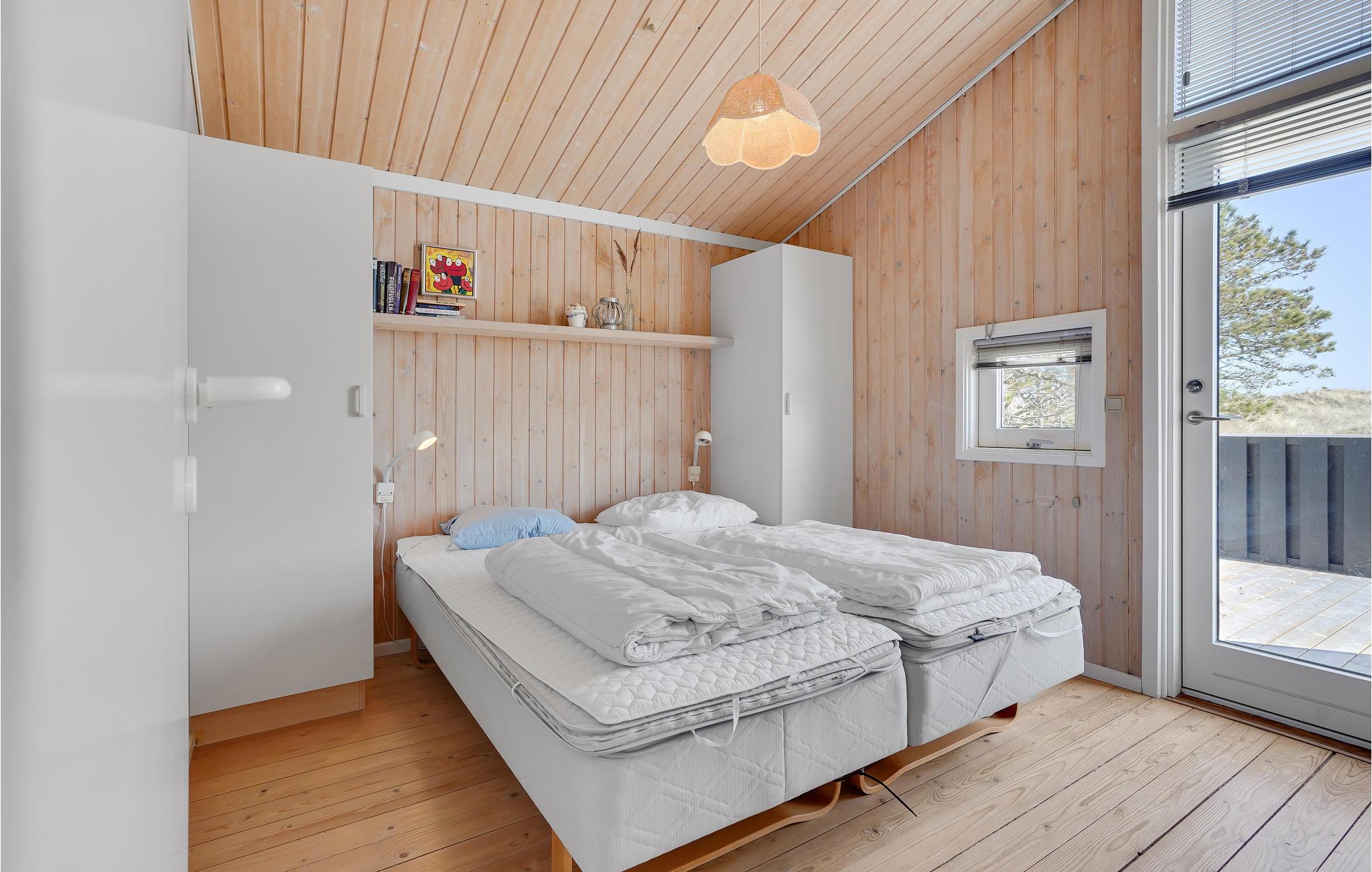 Der modern möblierte Wohnraum ist mit Panoramafenstern ausgestattet und daher tagsüber lichtdurchflutet. Das große Badezimmer ist mit Fußbodenheizung, einem Whirlpool und einer eigenen Sauna ausgestattet. Von hier haben Sie Zugang zum eigenen Poolbereich, der einen 17 m² großes Becken, so dass Sie hier bei Wind und Wetter Badespaß erleben können. Toilette und Waschbecken liegen separat und wie in der Küche ist hier auch der Boden beheizbar. Das Haus liegt etwas nördlich vom gemütlichen Fischerdorf Ålbæk. Nahe Skagen, Råbjerg Mile und Golfplatz.