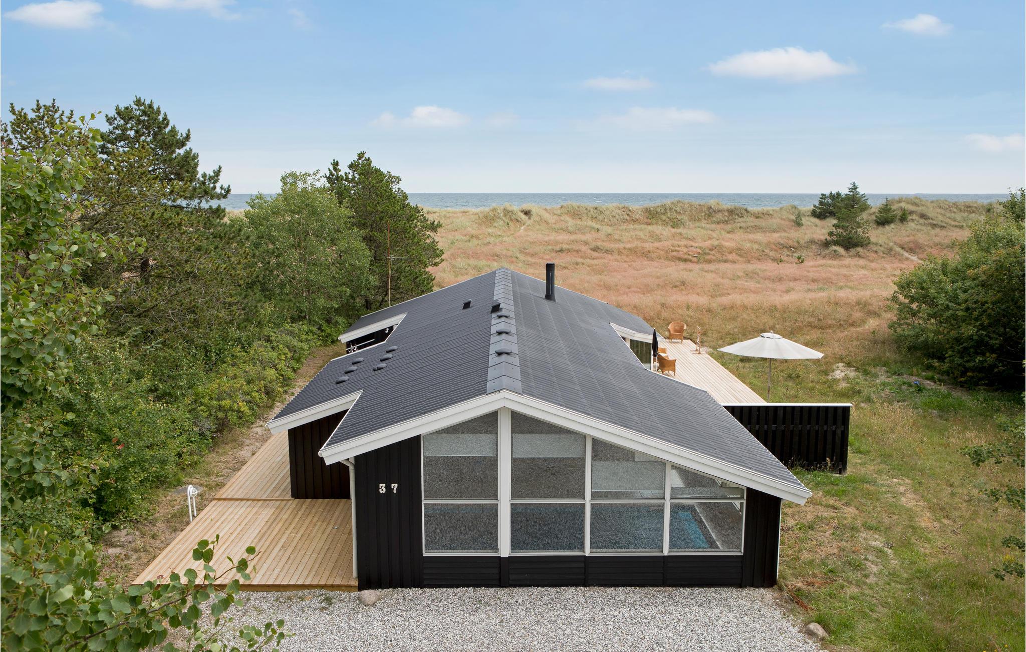 Modernes Ferienhaus mit Sauna, Whirlpool und eigenem Pool direkt an den Dünen am Meer gelegen.