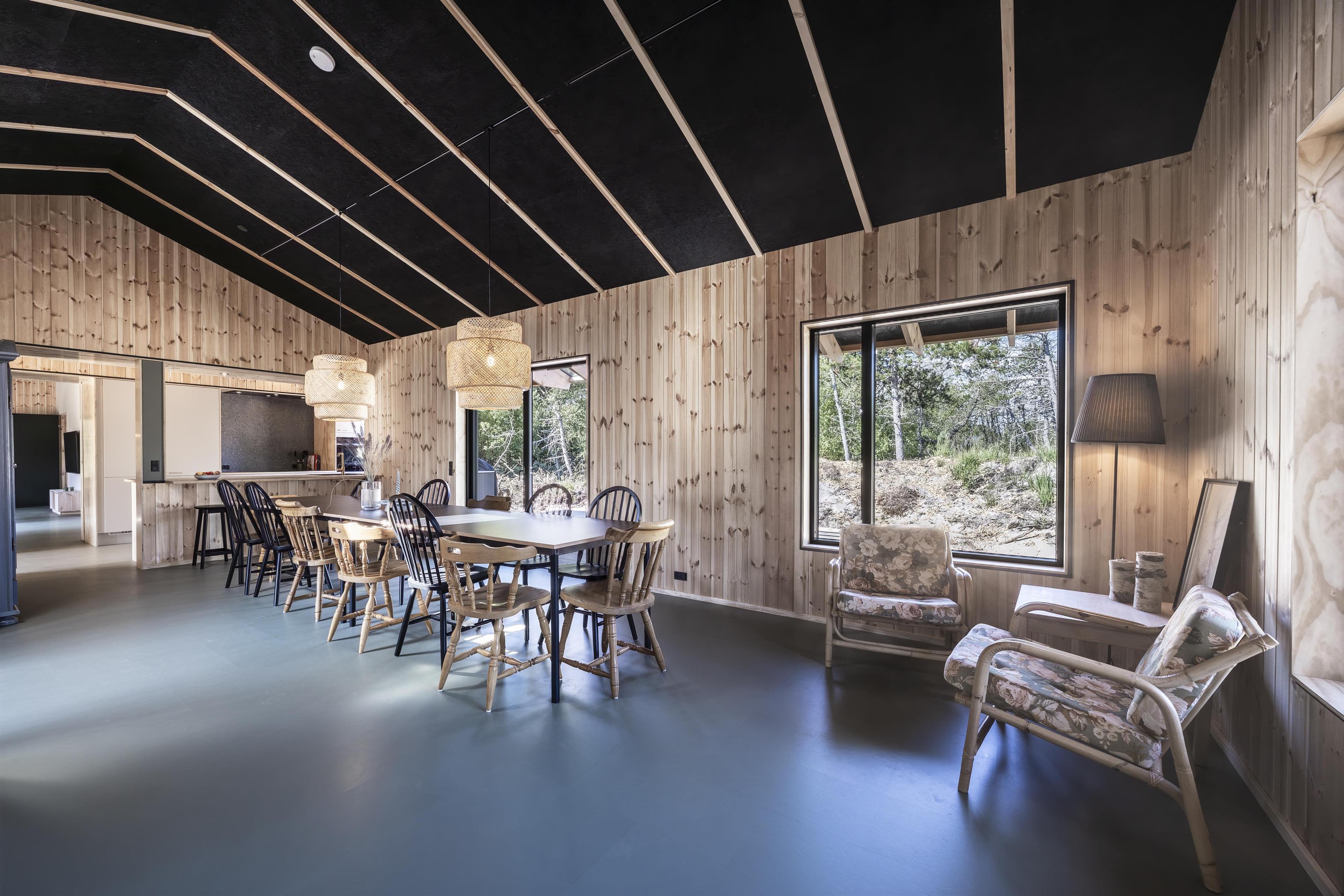 Das Ferienhaus überzeugt durch höchste Bauqualität und eine umweltfreundliche Architektur. Im Inneren erwarten Sie vier großzügige Schlafzimmer sowie zwei gemütliche Alkoven, die insgesamt bis zu 14 Personen beherbergen können. Große Panoramafenster durchfluten die Räume mit Licht und schaffen eine harmonische Verbindung zur umgebenden Natur.