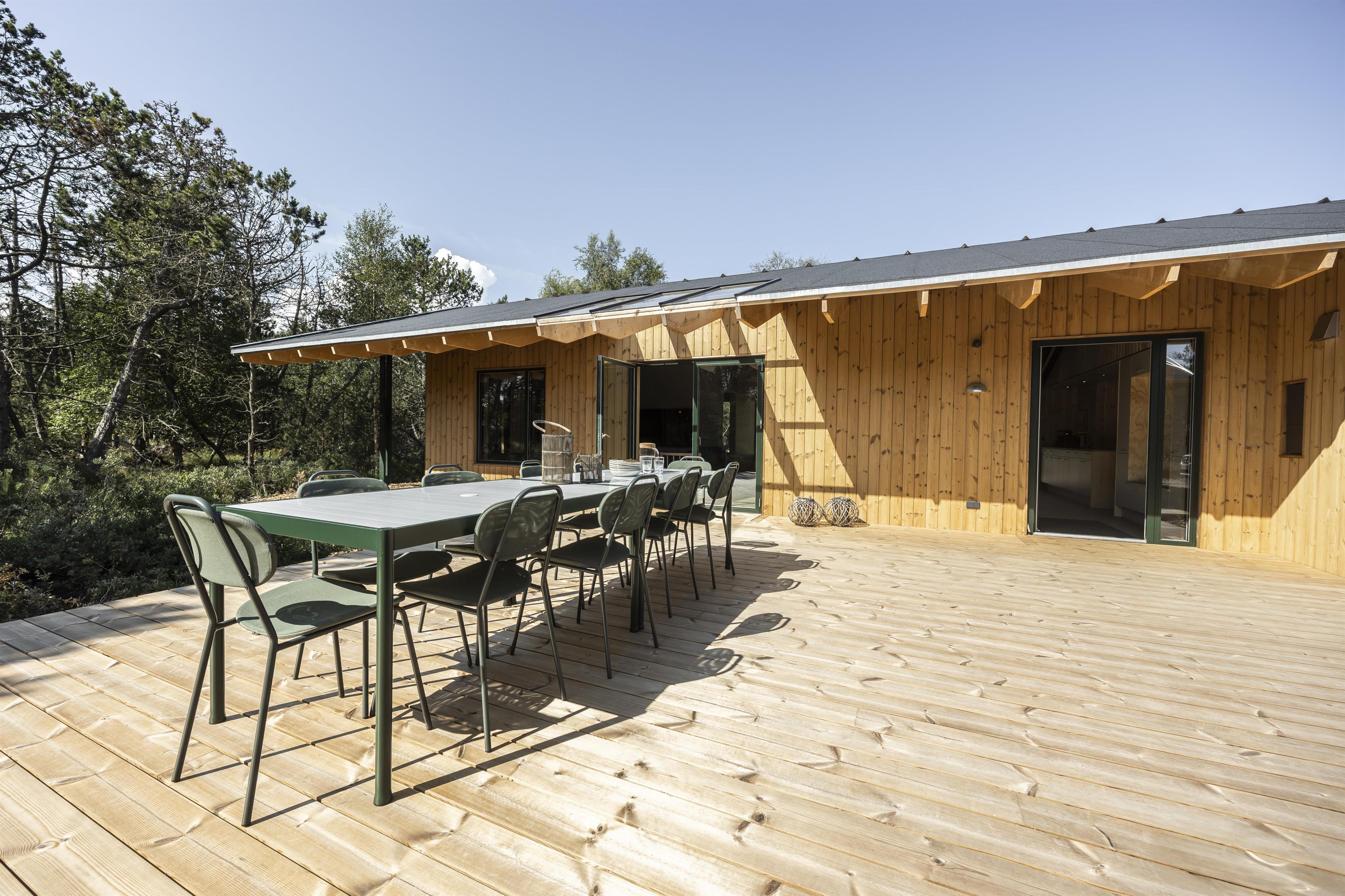 Stellt euch Urlaubstage vor, bei denen das Leben im Freien den Rhythmus vorgibt. Rund um das Ferienhaus erstrecken sich mehrere sonnige Terrassen, sodass ihr der Sonne vom Morgenkaffee bis zum Abendessen im goldenen Licht folgen könnt. Die umliegenden Bäume schaffen eine ruhige, private Oase mit Schutz und einer ganz besonderen Urlaubsatmosphäre.