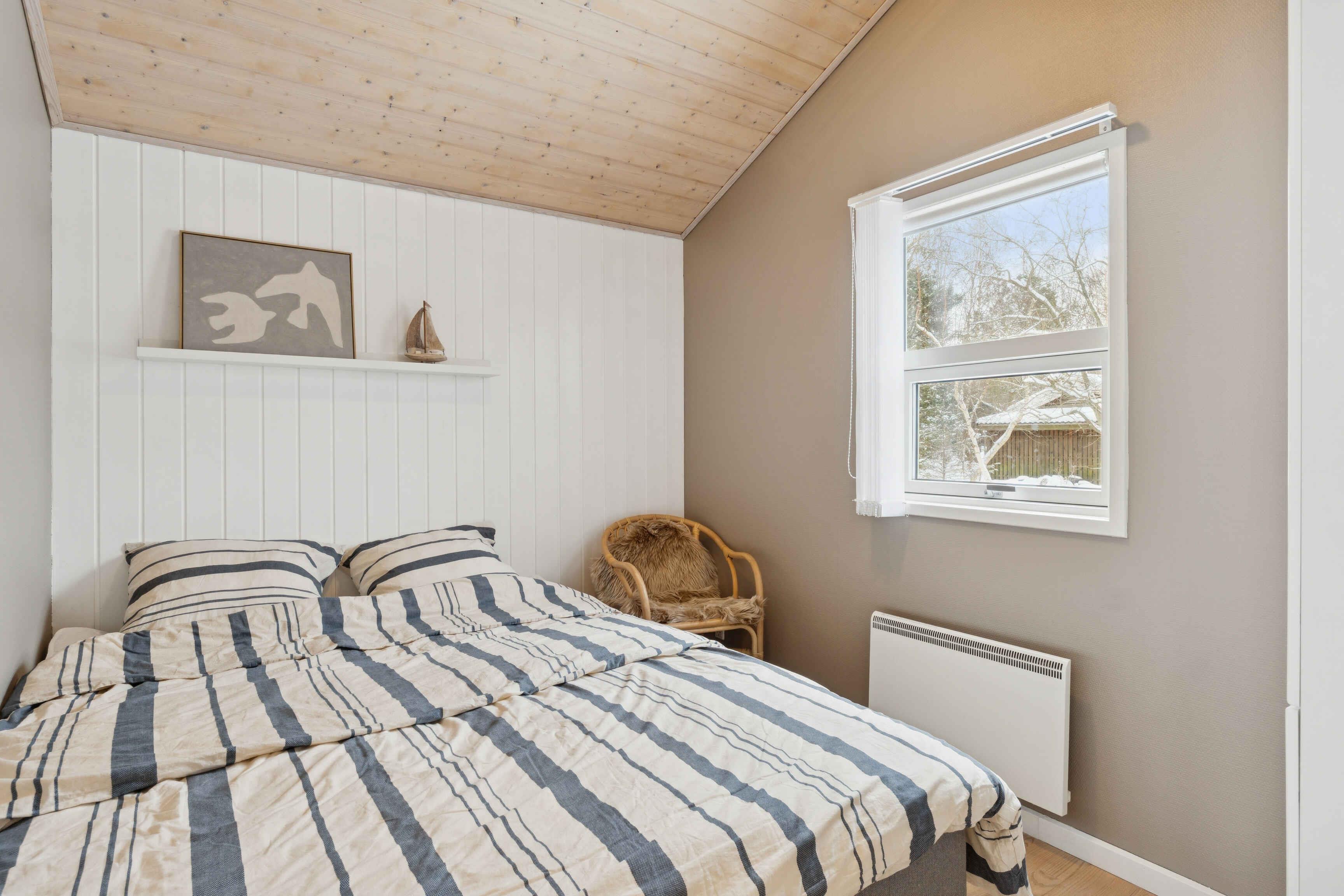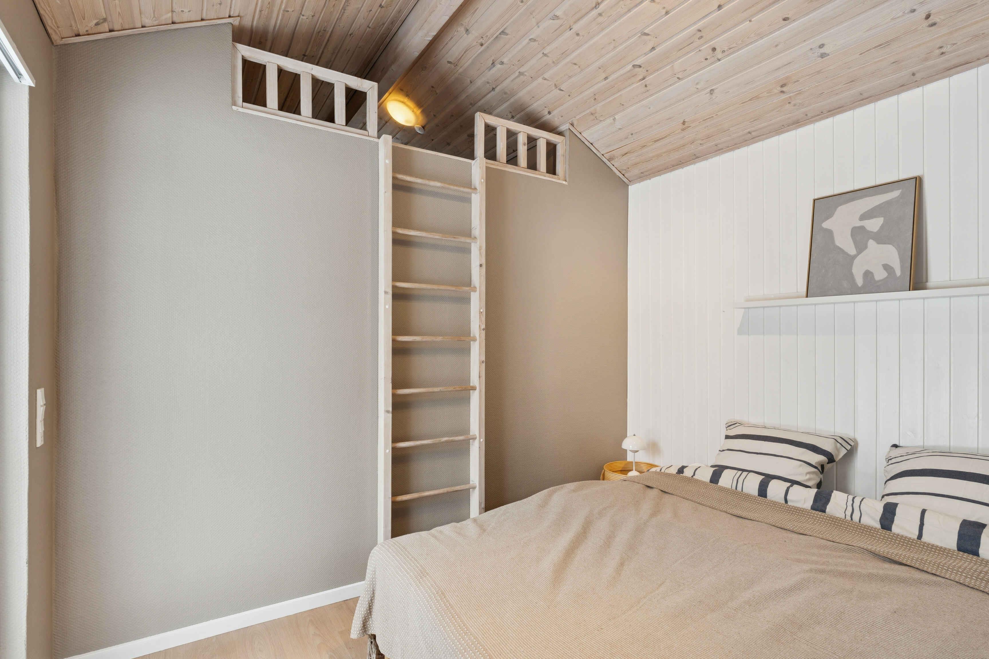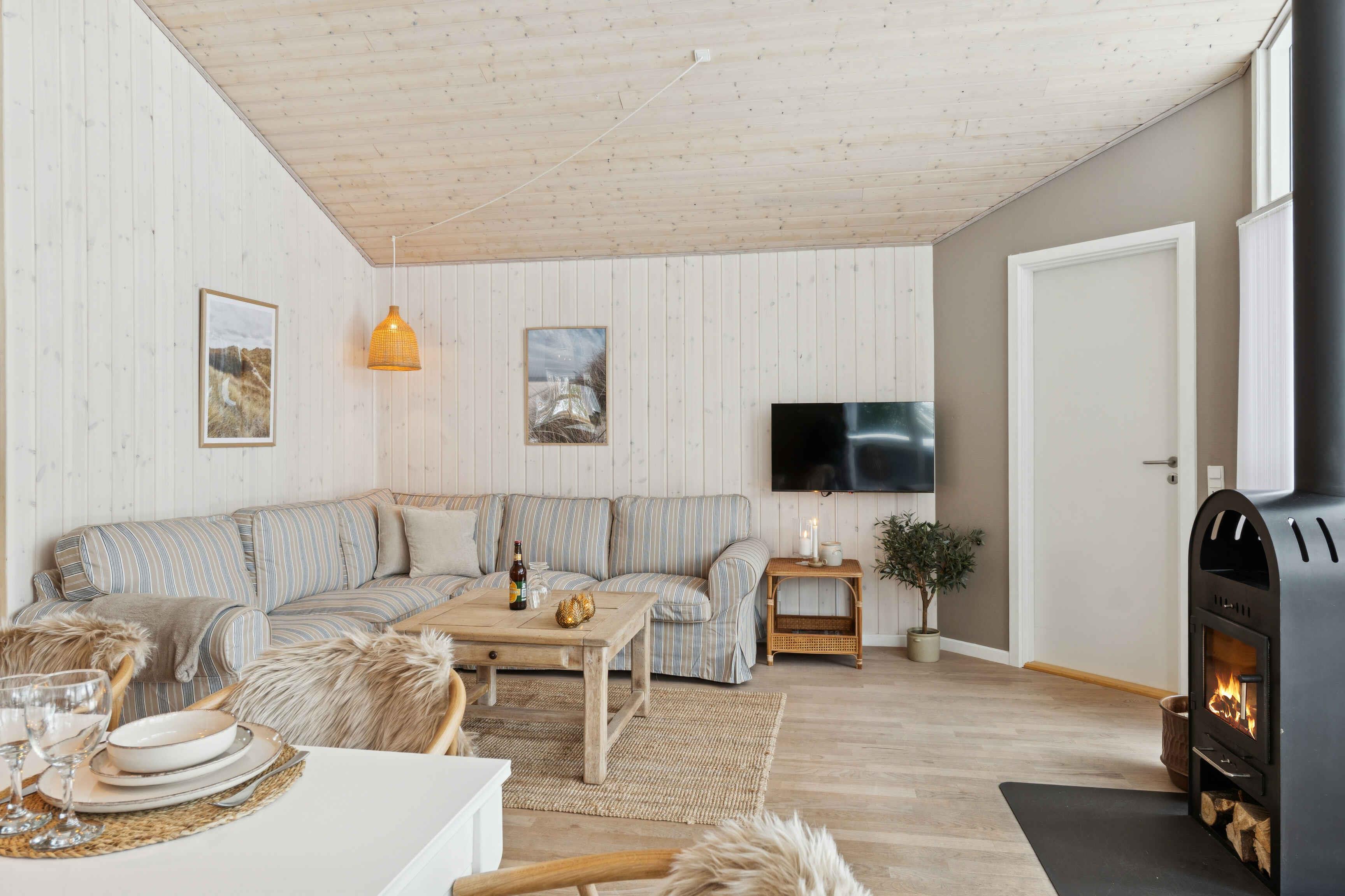 Dieses gepflegte 70 m² große Ferienhaus bietet einen ruhigen und einladenden Rahmen für den Urlaub. Das Haus ist frisch gestrichen, ordentlich und ansprechend eingerichtet und mit Holzpaneelen ausgestattet, die die klassische Ferienhausatmosphäre schaffen, die viele mit Entspannung und Gemütlichkeit verbinden. Die Raumaufteilung ist funktional mit drei Schlafzimmern und insgesamt fünf Schlafplätzen. Zwei Schlafzimmer befinden sich im Haupthaus mit Betten von 160 cm und 140 cm. Das dritte Schlafzimmer liegt im Annex und verfügt über neue Holzböden sowie ein 180 cm breites Doppelbett. Der Wohnbereich bildet das Herz des Hauses und lädt zum Beisammensein ein. Der Kaminofen sorgt an kühleren Tagen für zusätzliche Gemütlichkeit, während die überdachte Holzterrasse den Außenbereich erweitert und geschützte Mahlzeiten sowie ruhige Momente im Freien ermöglicht. Die Umgebung des Ferienhauses ist bekannt für ihre friedliche Atmosphäre, die offene Landschaft und die besondere Ruhe Nordjütlands. Der Strand von Ålbæk ist breit und kinderfreundlich und eignet sich ideal zum Baden, für Spaziergänge am Wasser und ruhige Abende mit Meerblick. Der Ort Ålbæk liegt ganz in der Nähe und bietet einen Hafen, Einkaufsmöglichkeiten und Restaurants. Auch Råbjerg Mile, die Ålbæk Plantage und Skagen sind lohnenswerte Ausflugsziele. Die Natur ist stets nah und bietet gute Möglichkeiten zum Radfahren, Wandern und für Erlebnisse im eigenen Tempo. Dieses Ferienhaus ist eine ausgezeichnete Wahl für alle, die ein gut gepflegtes Urlaubsdomizil mit Annex, bequemen Betten, Kaminofen und einer Lage suchen, in der Strand, Natur und Ausflugsziele leicht erreichbar sind. Die idealen Voraussetzungen für einen erholsamen und gelungenen Urlaub.