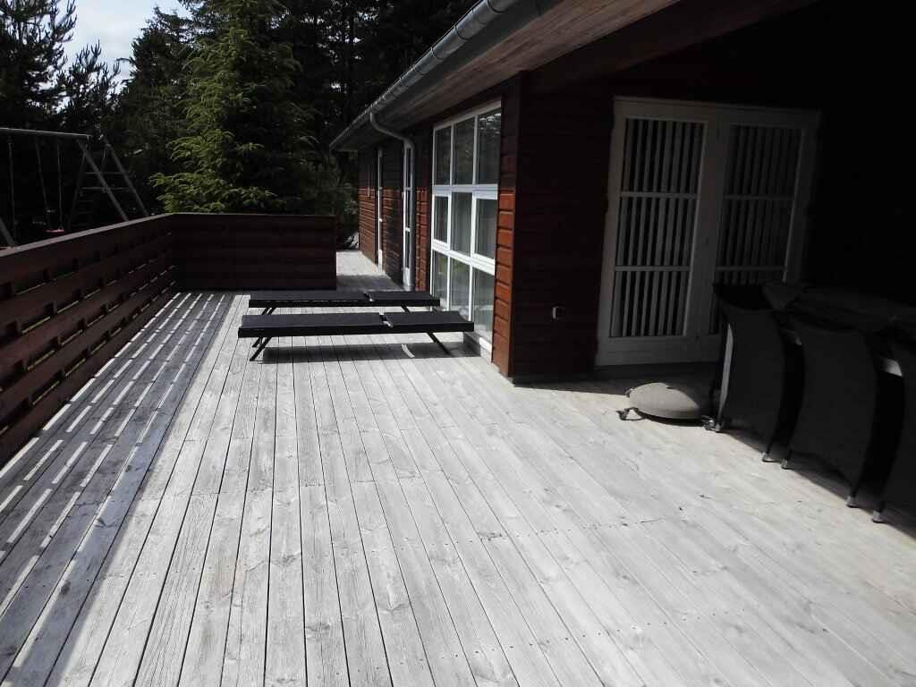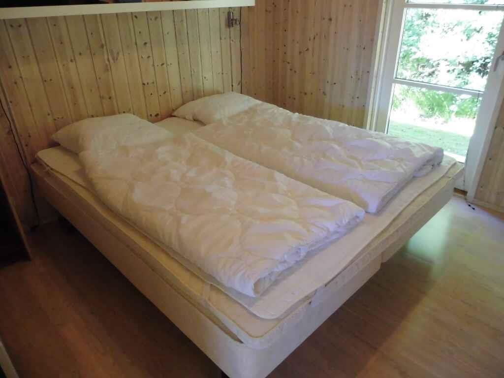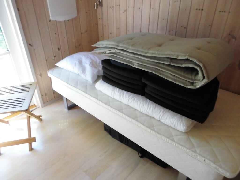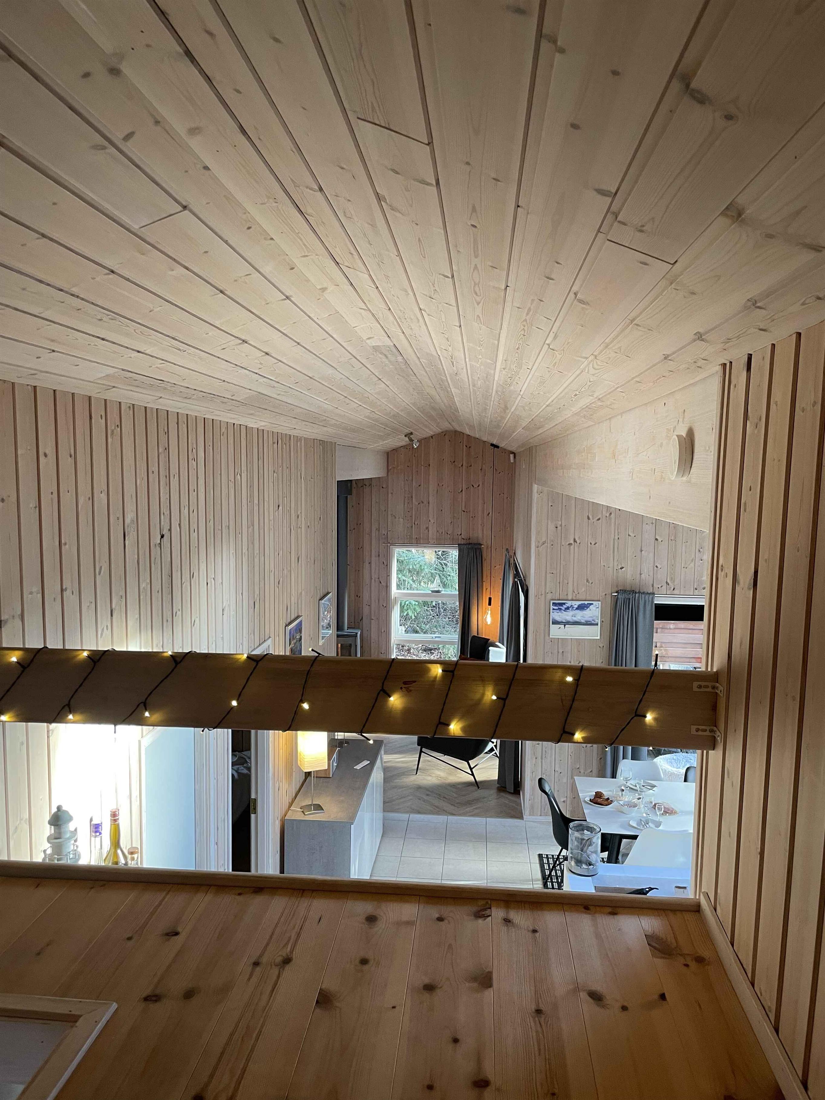 Das Haus bietet alles, was Sie zu einem wirklich angenehmen Urlaub brauchen. Es gibt ein nettes, helles Wohnzimmer mit offener Küche. Die beiden Räume sind nur durch eine Halbmauer voneinander getrennt, so dass die Familie zusammen bleiben kann, auch wenn manche sich im Wohnzimmer aufhalten, andere in der Küche wirken. Zwei Schlafzimmer mit je 2 Einzelbetten und ein Schlafzimmer mit einem Etagenbett für 2 Personen und einem Einzelbett, das zum Etagenbett geschoben werden kann. Es gibt auch 2 Schlafplätze auf dem Dachboden. Das eine der beiden Badezimmer hat einen entspannenden Whirlpool und eine Sauna. Am Haus befindet sich eine schöne und große, teilweise überdeckte Terrasse.