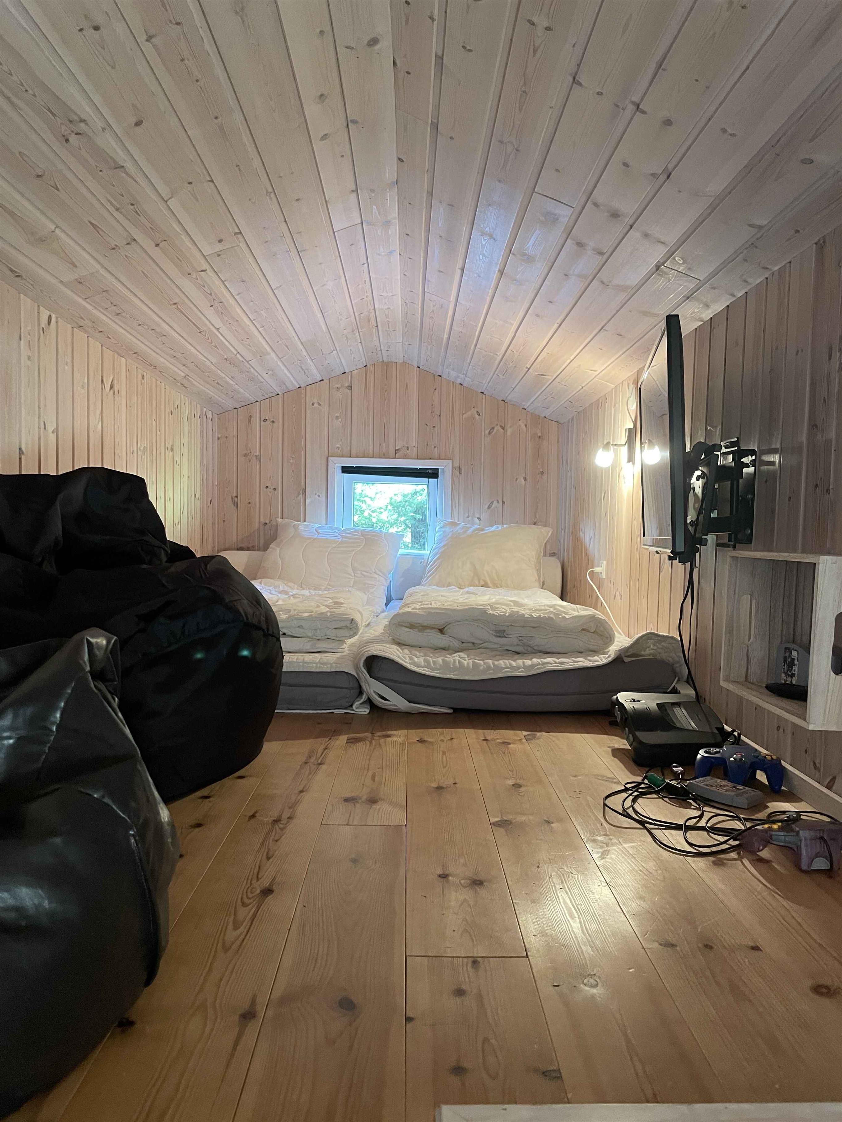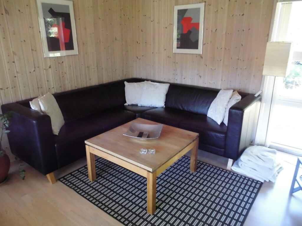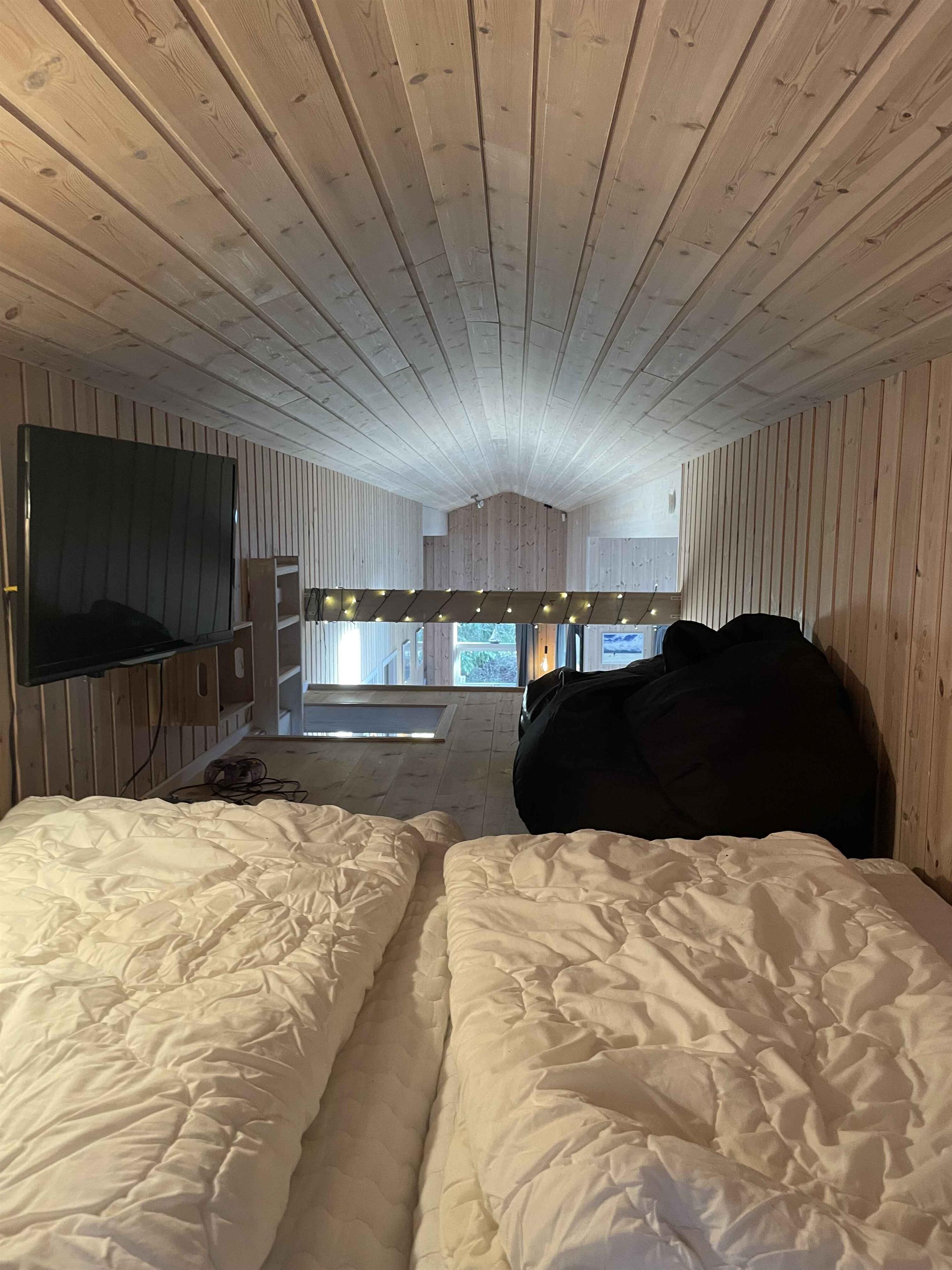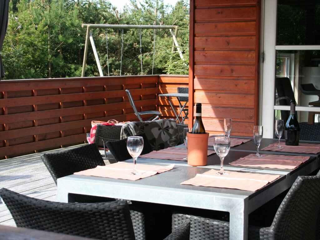 Das Haus bietet alles, was Sie zu einem wirklich angenehmen Urlaub brauchen. Es gibt ein nettes, helles Wohnzimmer mit offener Küche. Die beiden Räume sind nur durch eine Halbmauer voneinander getrennt, so dass die Familie zusammen bleiben kann, auch wenn manche sich im Wohnzimmer aufhalten, andere in der Küche wirken. Zwei Schlafzimmer mit je 2 Einzelbetten und ein Schlafzimmer mit einem Etagenbett für 2 Personen und einem Einzelbett, das zum Etagenbett geschoben werden kann. Es gibt auch 2 Schlafplätze auf dem Dachboden. Das eine der beiden Badezimmer hat einen entspannenden Whirlpool und eine Sauna. Am Haus befindet sich eine schöne und große, teilweise überdeckte Terrasse.