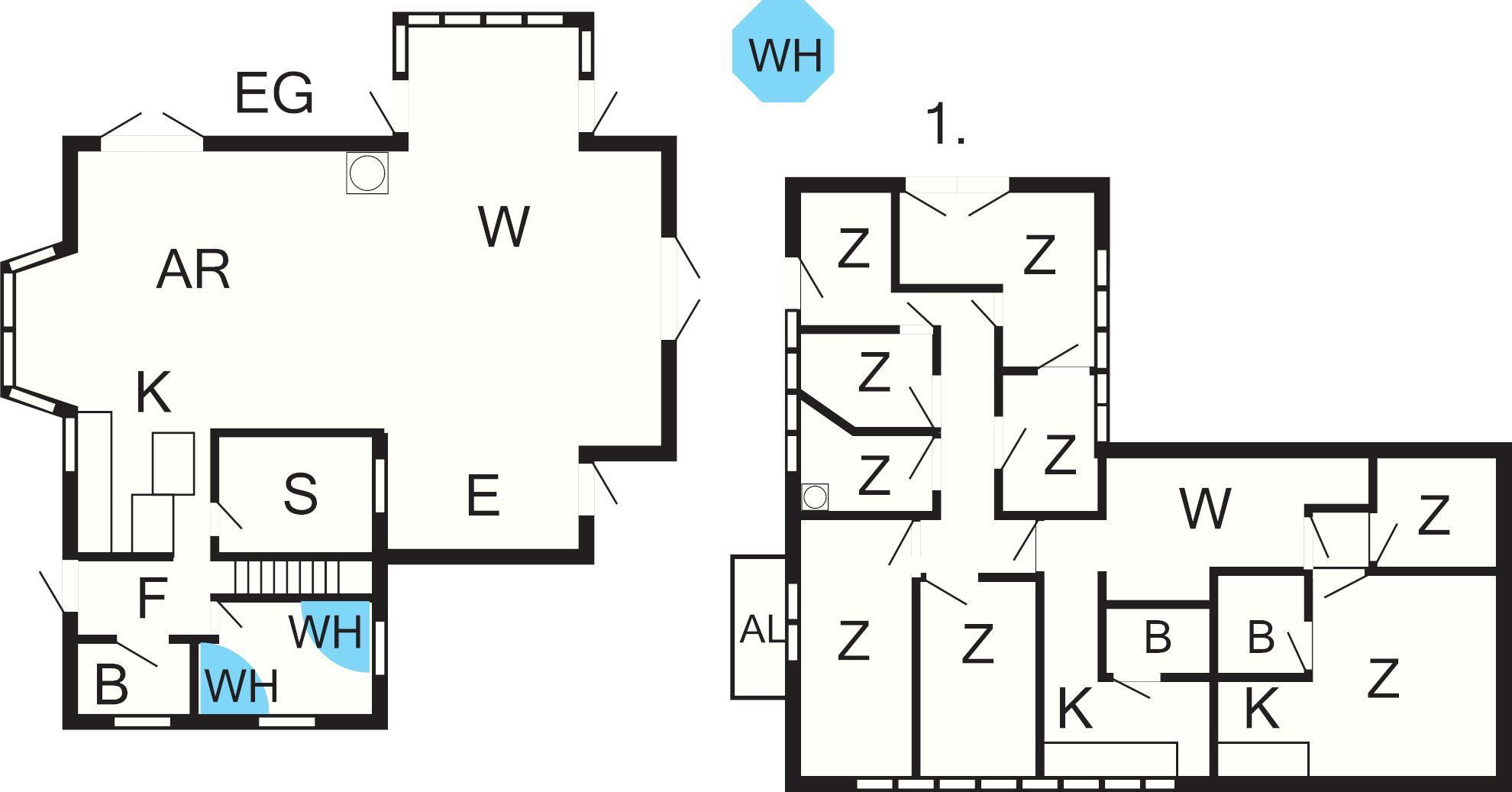 Bad: WC, Waschb., Dusche, Dampfkabine, Fußbodenheiz.