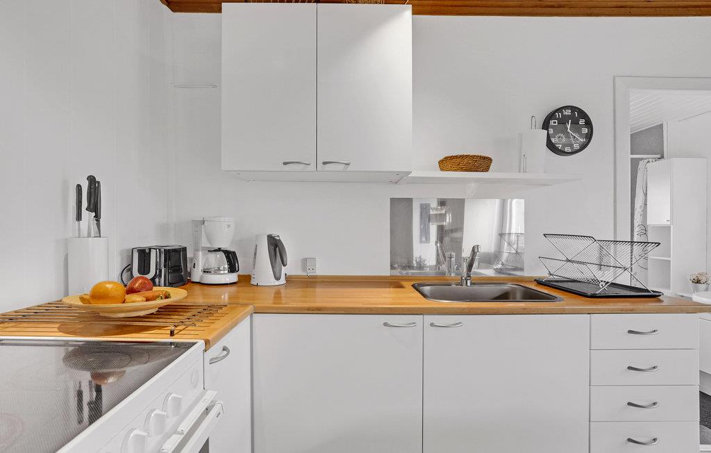 Nettes Ferienhaus mit Blick aufs Wasser.