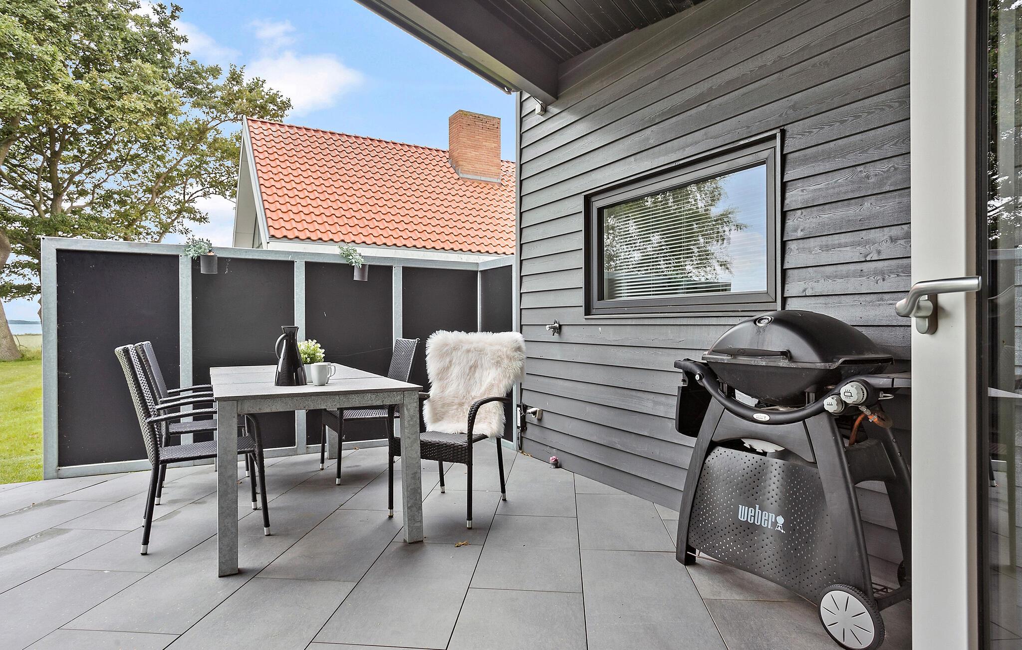Erleben Sie ein modernes Ferienhaus auf Årø mit Panoramablick, Kamin und großzügiger Terrasse inmitten der Natur.