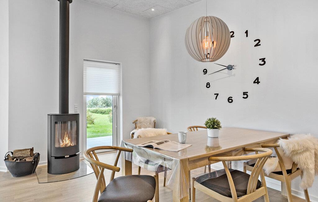 Dieses stilvolle Ferienhaus ist der ideale Ort, um die Seele baumeln zu lassen und die beeindruckende Natur Ihrer Urlaubsinsel zu genießen. Von der großzügigen Terrasse und dem lichtdurchfluteten Wohnbereich aus haben Sie einen weiten Blick auf die grüne Landschaft und das nahe Meer. Starten Sie den Tag mit einem entspannten Frühstück auf der Terrasse, während Sie die frische Seeluft genießen. Die moderne Küche lädt zum gemeinsamen Kochen ein, während der stilvoll eingerichtete Wohnbereich ideale Bedingungen für entspannte Abende mit der Familie oder Freunden schafft. Machen Sie es sich auf dem bequemen Sofa gemütlich und genießen Sie den Ausblick durch die großen Panoramafenster oder verbringen Sie den Abend am Kaminofen bei einem guten Buch.