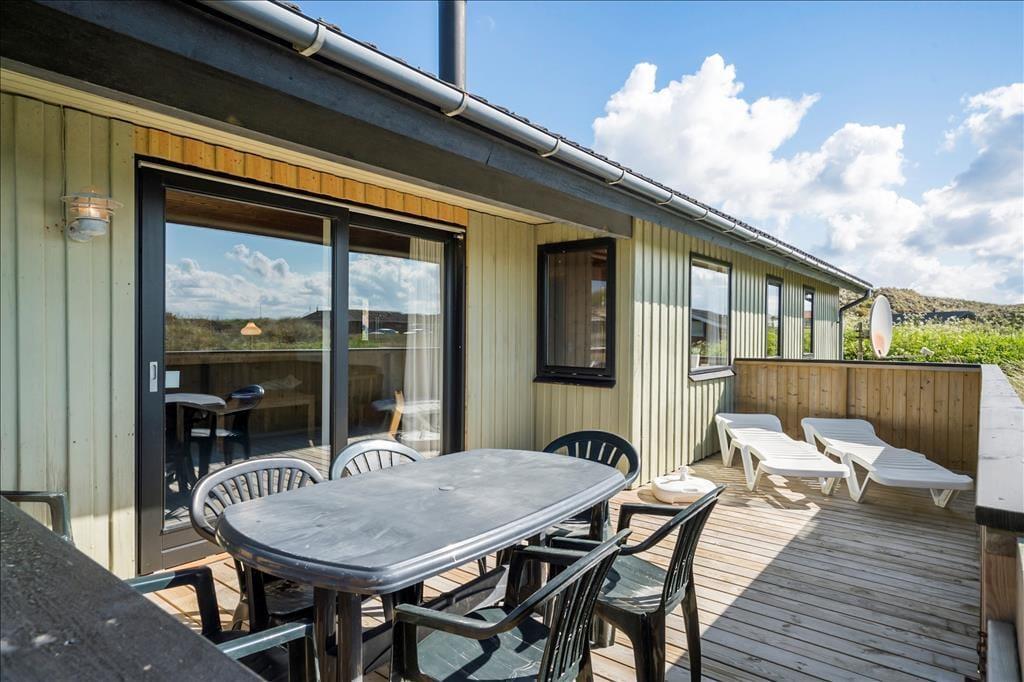 Im Südosten gibt es eine teilweise überdachte und geschlossende Terrasse mit Gartenmöbeln, Liegestühlen und einem Grill. Von der Terrasse können Sie den Blick in die Dünen genießen. Für die Kinder sind auf dem Naturgrundstück eine Schaukel und ein Sandkasten vorhanden.
