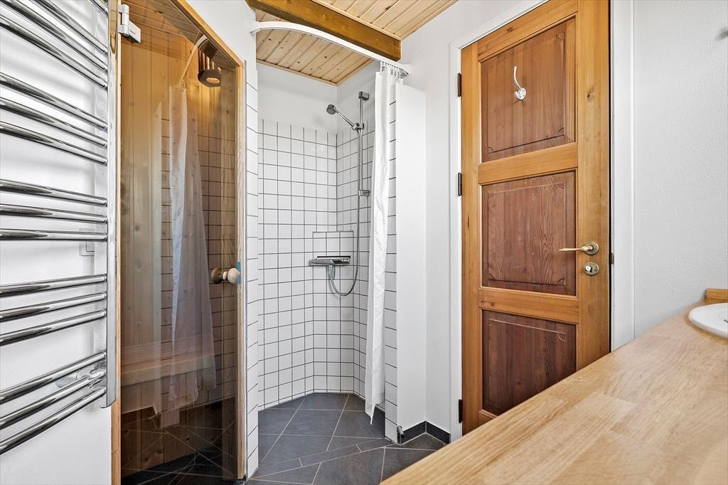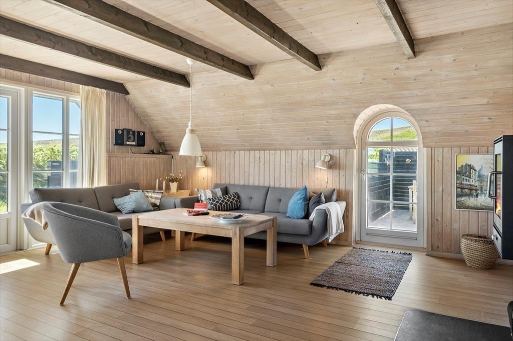 Bereits von Außen wirkt das rote Steinhaus mit seinen runden Sprossenfenstern und dem idyllischen Reetdach schön und stimmungsvoll. Dieser Eindruck setzt sich unvermindert im Hausinneren fort. Im Aufenthaltsbereich sorgen die holzvertäfelten, schrägen Decken, die offene Balkenlage und die Holzwände für eine wunderschöne Wohnatmosphäre. In Kombination mit dem Tageslichteinfall und der Aussicht erwartet Sie ein überaus stimmungsvoller Rahmen für erholsame Urlaubstage. Die offene Küche fügt sich harmonisch in den Aufenthaltsbereich ein. Ihre Mahlzeiten servieren Sie am gemütlichen Esstisch, an dem Sie am Abend gemeinsam Brettspiele spielen können. Der Kaminofen sorgt für ein Maximum an Gemütlichkeit, während Sie entspannte Stunden mit einem guten Film oder einem spannenden Buch auf der schönen Polstersitzgarnitur genießen. Die Schlafräume weisen eine gute Größe auf. Der Rest der Wohnfläche ist dem tollen Badezimmer mit einer Sauna, einer Duschnische und einer Waschmaschine überlassen.