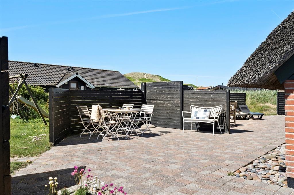 Das Ferienhaus ist im Süden, Westen und Norden von Terrassen mit geschützten Zäunen umgeben, auf denen Sie die sonnigen Sommertage mit köstlichen Mahlzeiten in der Sonne verbringen können. (Grillen darf nur mit aufgestellten Gasgrills und wegen des Reetdaches kein offenes Feuer) Auch für die Kleinsten der Familie gibt es hier viel Platz zum Spielen und Ballspielen, denn das Gelände ist mit einer Rasenschaukel angelegt und Fußballtor.