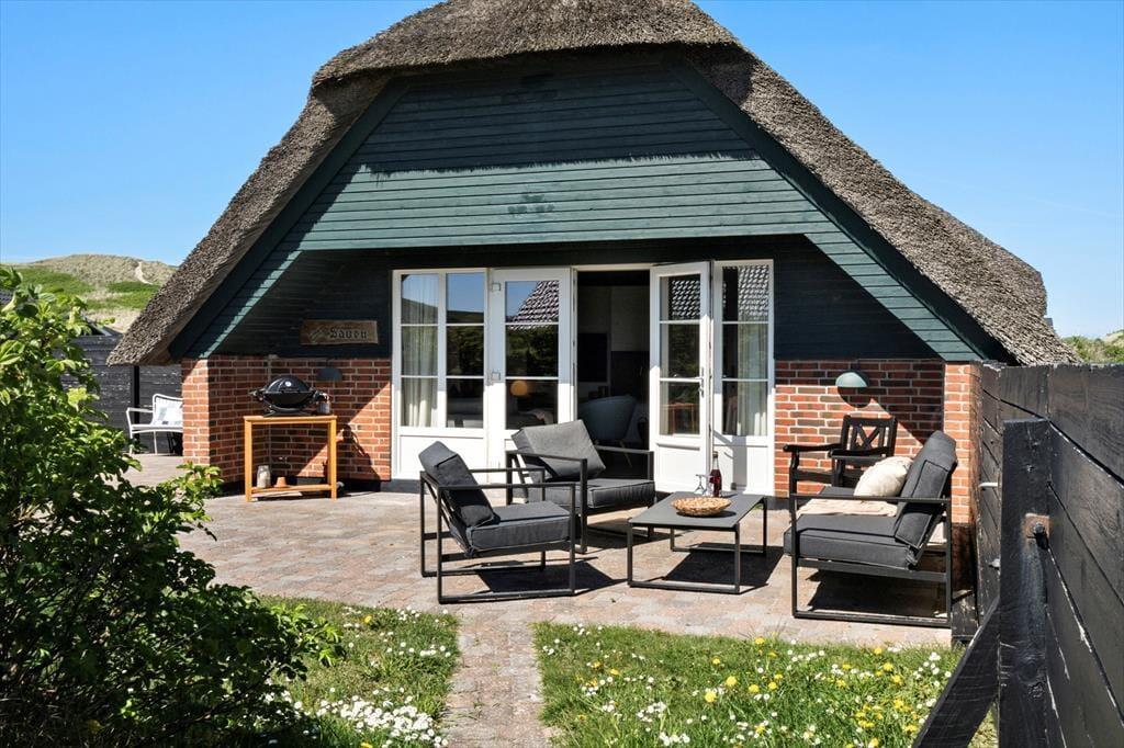 Auf den Terrassen können Sie sich allabendlich niederlassen und dabei zuschauen, wie die Sonne den Himmel in orangefarbene Töne taucht und langsam hinter den rund 200 Meter entfernten Dünen versinkt. Noch beeindruckender sind die Sonnenuntergänge, wenn Sie sie von einem der Dünenwipfel aus bewundern. Dank der kurzen Entfernung zur Nordsee werden Sie sich gern und oft am Strand aufhalten. Alternativ laden zahllose Wanderpfade und ein Fahrradweg, der von Süd nach Nord durch die wunderschöne, hügelige Dünenlandschaft Holmsland Klits führt, zu Spaziergängen und Radtouren ein. Die Umgebung von Hvide Sande ist ein wahres Mekka für Wassersportler und Angler. Surfer treffen an Meer und Fjord auf tolle Spots. Angler dürfen sich auf mehrere Angelseen und die beliebte Schleuse in Hvide Sande freuen, die Tag für Tag zahlreiche Angler anzieht. Der beliebte Hafenort, der nach rund fünf Minuten Fahrtzeit erreicht ist, überzeugt mit schönen Geschäften, mehreren Einkaufsmöglichkeiten und guten Lokalitäten.