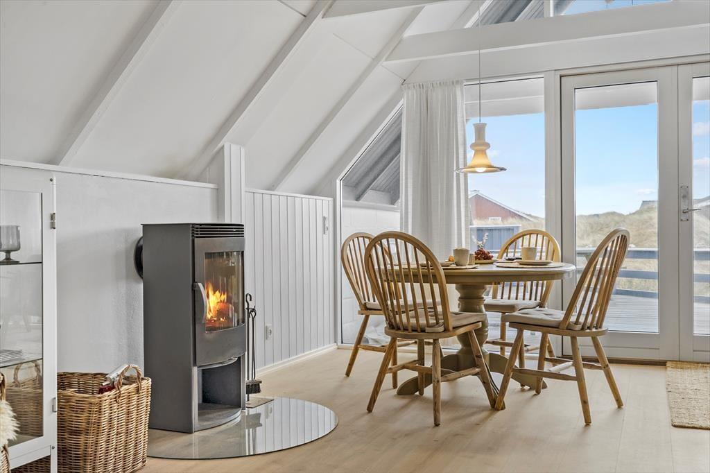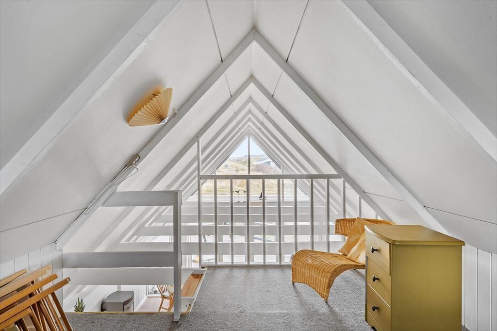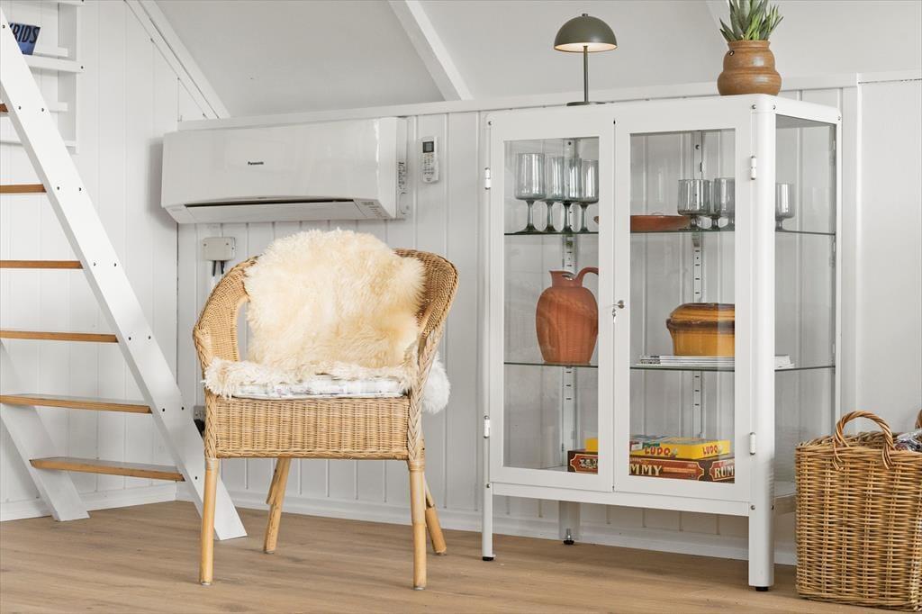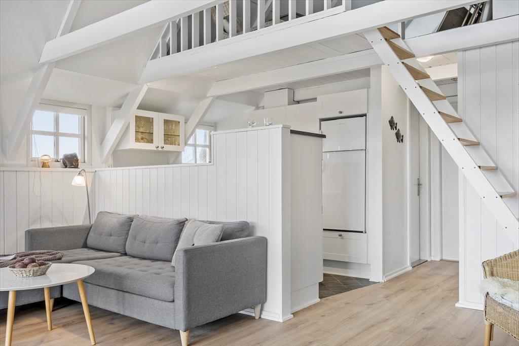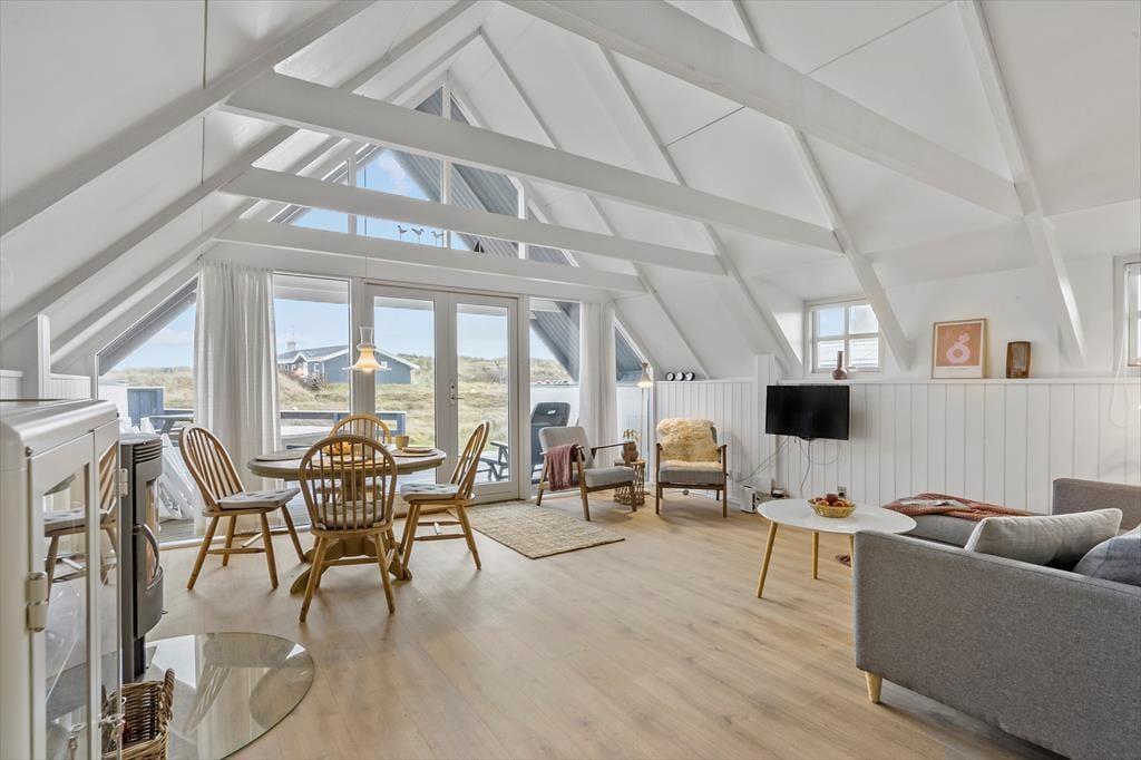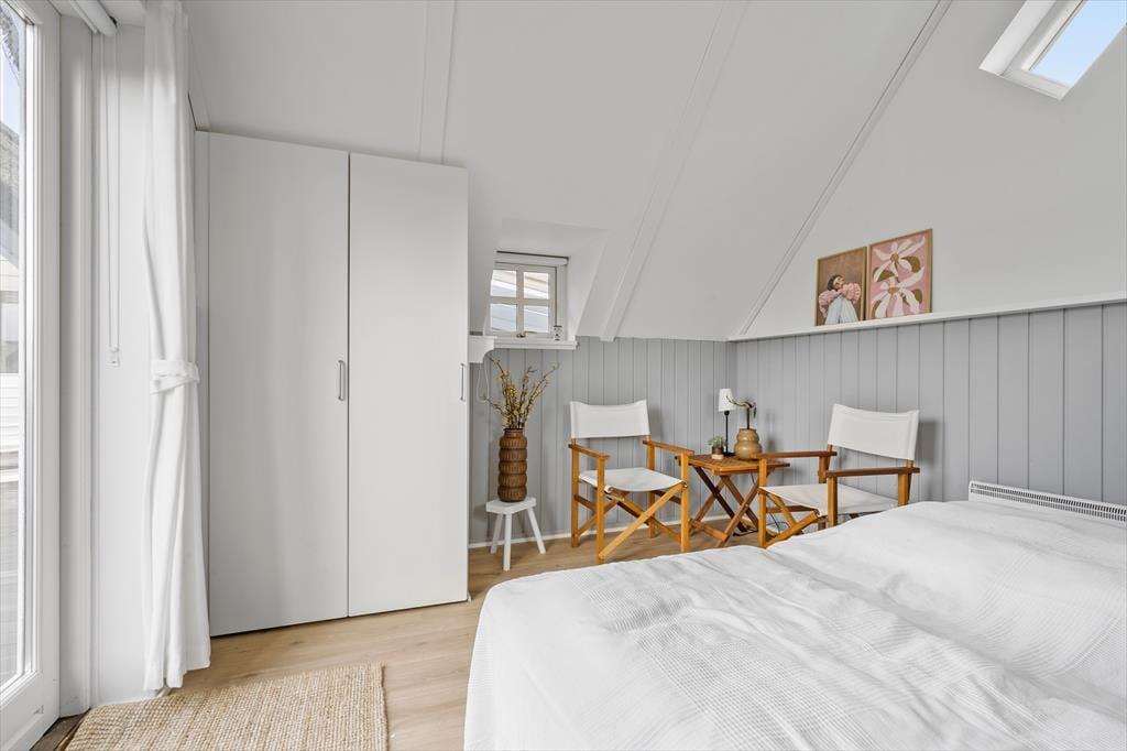 Die Innenräume des Ferienhauses sind stimmungsvoll eingerichtet und bieten Platz für Gemütlichkeit und Zusammenhalt. Das „Herz des Hauses“ bildet der offene Küchen-Wohnbereich, der euer Rahmen für viele gemütliche Stunden sein wird. Vom Wohnzimmer aus könnt ihr die Aussicht durch große Fenster genießen und die Wärme des Kaminofens schafft eine entspannte Atmosphäre. Der offene Dachboden bietet zusätzlichen Raum zum Entspannen oder um ein gutes Buch zu lesen, und obwohl der „Hems“ ein Teil des offenen Wohnbereichs ist, fühlt es sich dort wie ein kleiner Rückzugsort an. Das Haus verfügt über zwei gemütliche Schlafräume – eines im Haus und das andere in einem separaten Annex. Der Annex bietet direkten Zugang zur Terrasse. Hier kann der Tag mit einer köstlichen Tasse Kaffee an der frischen Meeresluft beginnen.