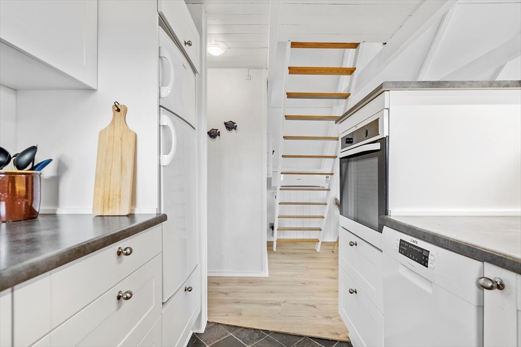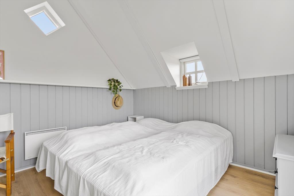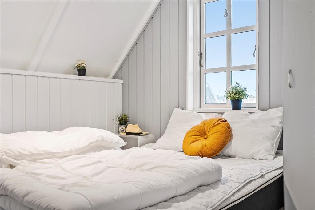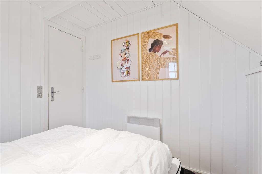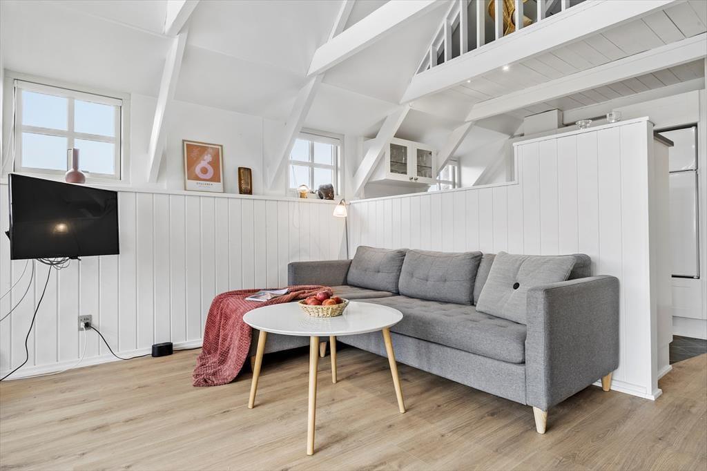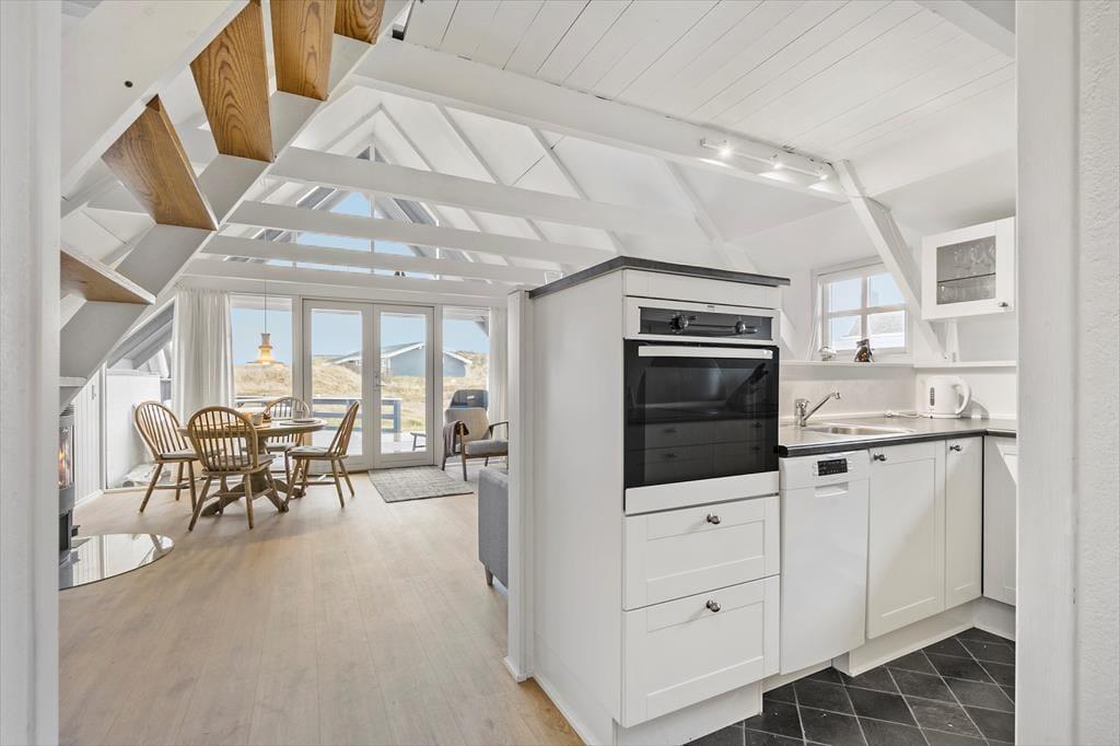 Die Innenräume des Ferienhauses sind stimmungsvoll eingerichtet und bieten Platz für Gemütlichkeit und Zusammenhalt. Das „Herz des Hauses“ bildet der offene Küchen-Wohnbereich, der euer Rahmen für viele gemütliche Stunden sein wird. Vom Wohnzimmer aus könnt ihr die Aussicht durch große Fenster genießen und die Wärme des Kaminofens schafft eine entspannte Atmosphäre. Der offene Dachboden bietet zusätzlichen Raum zum Entspannen oder um ein gutes Buch zu lesen, und obwohl der „Hems“ ein Teil des offenen Wohnbereichs ist, fühlt es sich dort wie ein kleiner Rückzugsort an. Das Haus verfügt über zwei gemütliche Schlafräume – eines im Haus und das andere in einem separaten Annex. Der Annex bietet direkten Zugang zur Terrasse. Hier kann der Tag mit einer köstlichen Tasse Kaffee an der frischen Meeresluft beginnen.