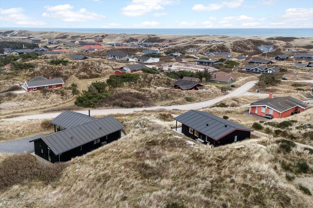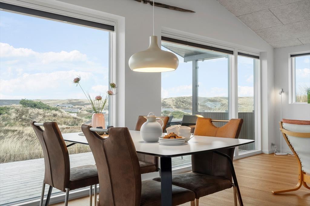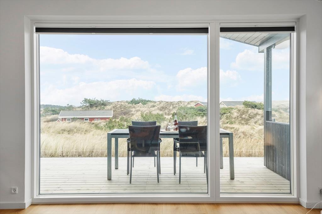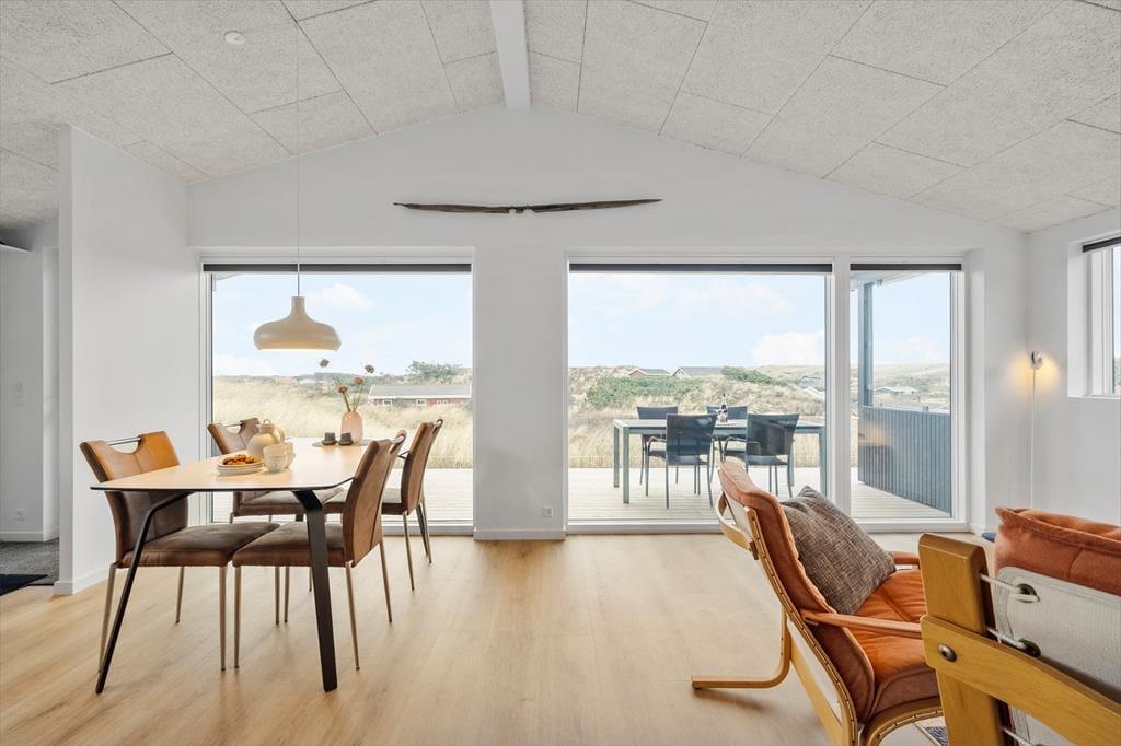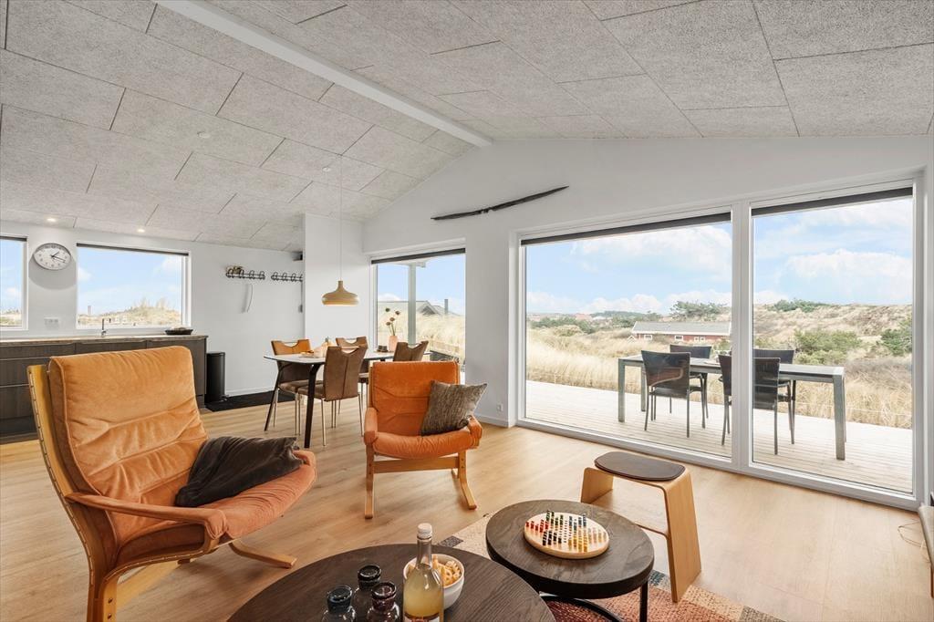 Es erwartet dich ein Ferienhaus, in dem Architektur, Lage und Aussicht eine harmonische Einheit bilden. Hier beginnt die Erholung vom ersten Moment, sobald du die Haustür aufgeschlossen hast. Das Ferienhaus liegt erhöht in der Dünenlandschaft. Das gibt ein besonderes Gefühl von Weite und Freiheit und du kannst über die Dünenlandschaft hinaus sogar den Ringkøbing Fjord am Horizont erahnen.