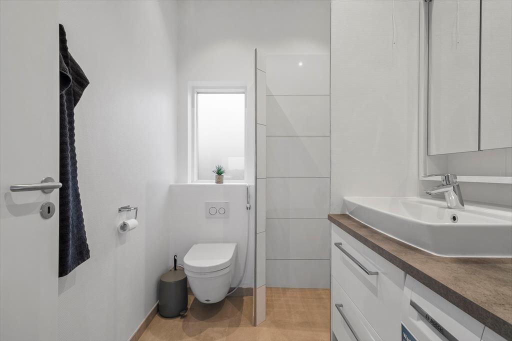 Die ruhigen Schlafzimmer sind auf Entspannung und Komfort ausgelegt – nach einem Tag an der frischen Fjord- und Nordseeluft kommst du wirklich wunderbar zur Nachtruhe. Das Badezimmer präsentiert sich hell und stilvoll und rundet den Eindruck eines modernen Ferienhauses mit Liebe zum Detail richtig schön ab.