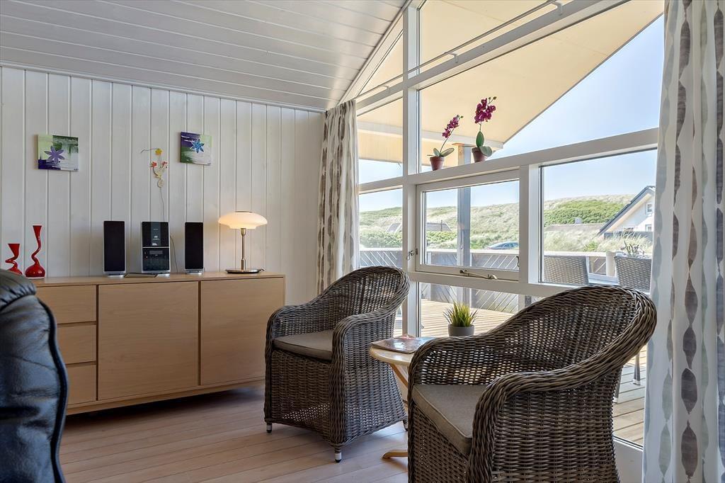Wenn Sie einen Großteil Ihres Urlaubs am Wasser verbringen möchten, dann ist dieses Ferienhaus eine ideale Wahl. Von Wohnraum und Terrasse aus blicken Sie auf die äußerste Dünenreihe vor dem Argab Strand. Auf dem Kamm der Dünen eröffnet sich Ihnen eine herrliche Aussicht über die attraktive Küstenlinie und die Nordsee. Holmsland Klit ist eine schmale Nehrung zwischen Nordsee und dem im Osten gelegenen Ringkøbing Fjord, der unter anderem beste Möglichkeiten für Vogelbeobachtungen sowie zum Surfen, SUP-Boarden und Angeln bietet. Per Fahrrad und per Pkw gelangen Sie durch die reizvolle Natur Holmsland Klits in den nahegelegenen Fischereihafenort Hvide Sande, in dem Sie auf schöne Geschäfte, gute Restaurants, interessante Veranstaltungen und Aktivitätsmöglichkeiten treffen.