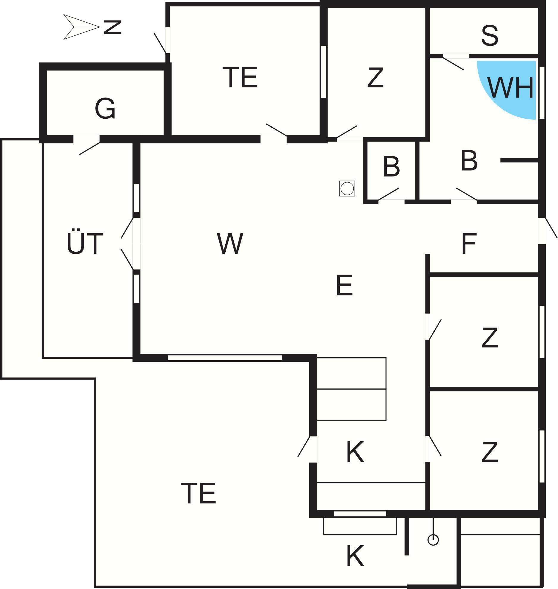 Bad: Waschm, Trockner, WC, Waschb., Dusche, Fußbodenheiz.
