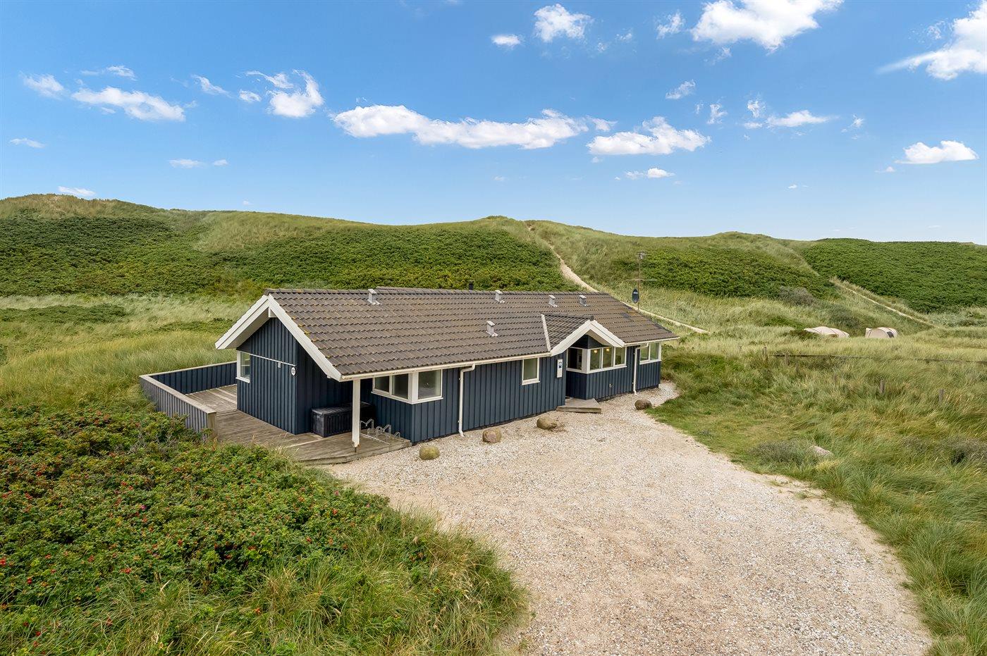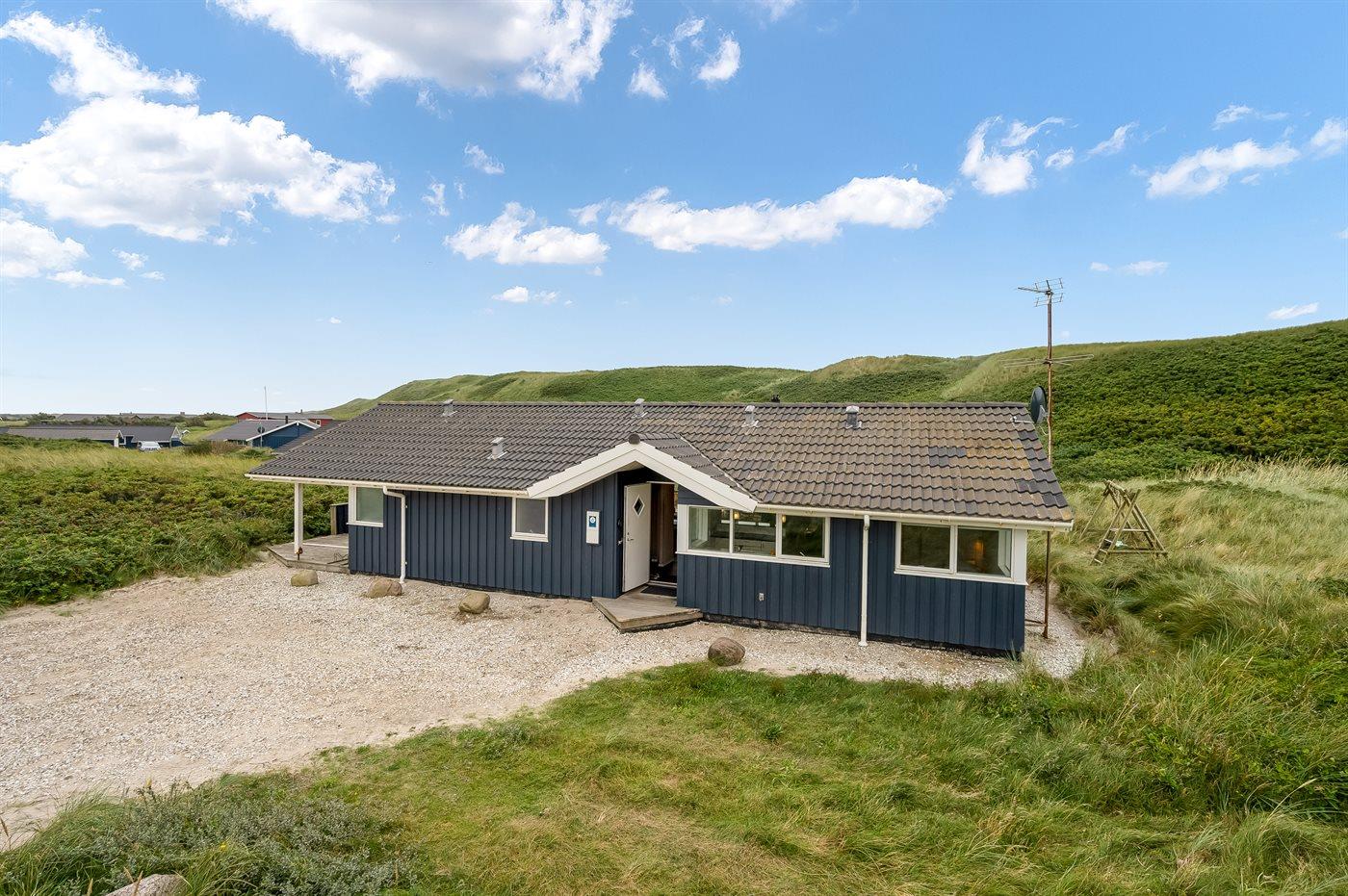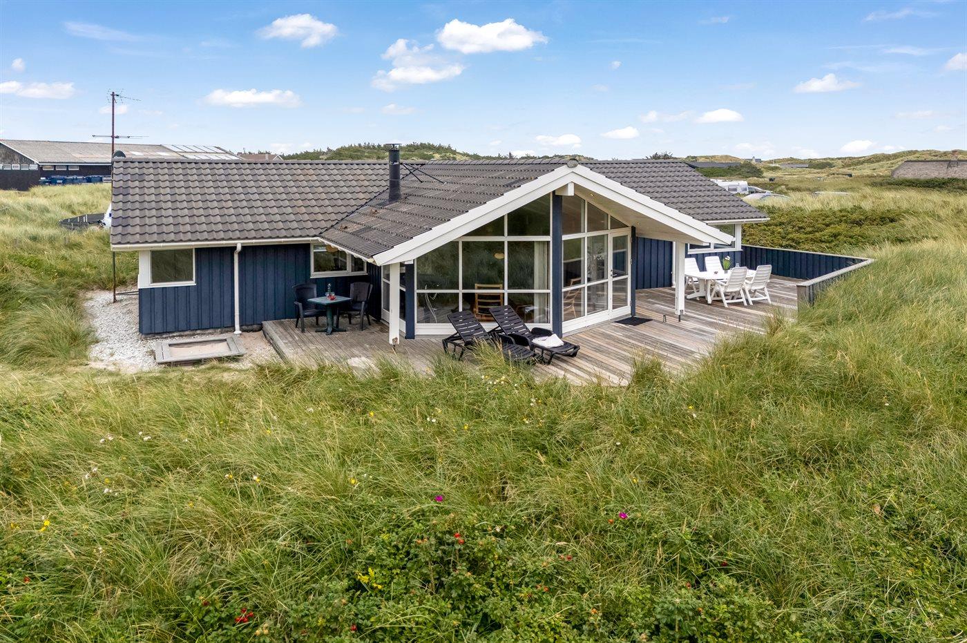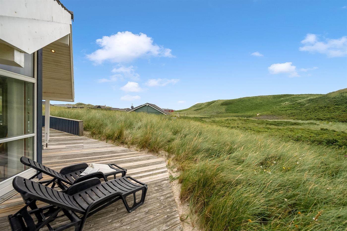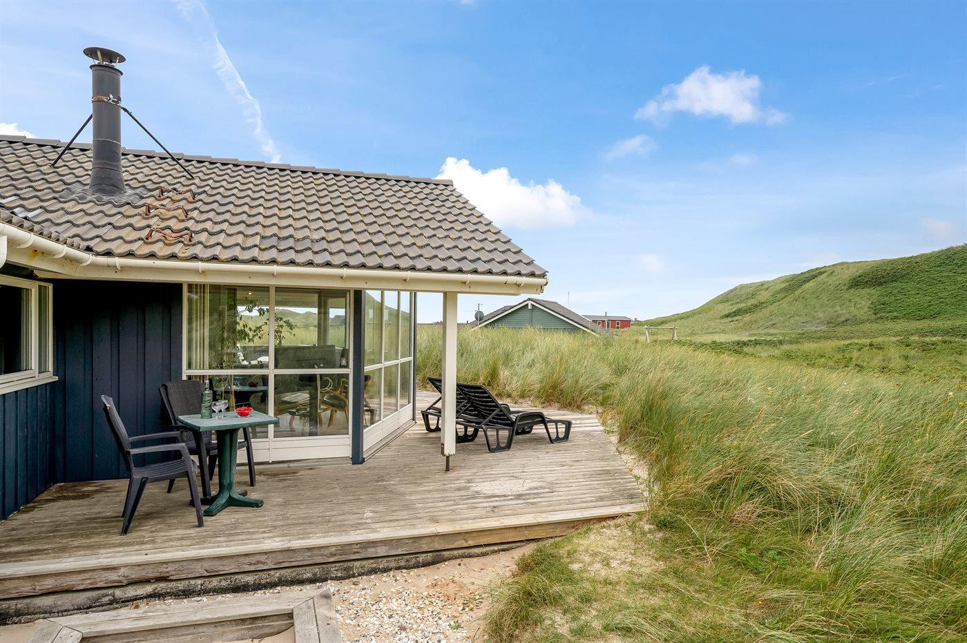 Möchtest du lieber die schöne Natur sowie den Klang und den Duft der Nordsee genießen, bietet die südwestlich ausgerichtete, große und teilweise überdachte Terrasse viele Möglichkeiten. Hier wirst du dich ganz sicher mit der Natur verbunden fühlen. Wenn Kinder mit im Urlaub sind, können sie draußen spielen, wo es eine Schaukel und einen Sandkasten gibt. Mit der Nordsee auf der anderen Seite der Düne kannst du die schöne dänische Westküste bei jedem Wetter genießen.