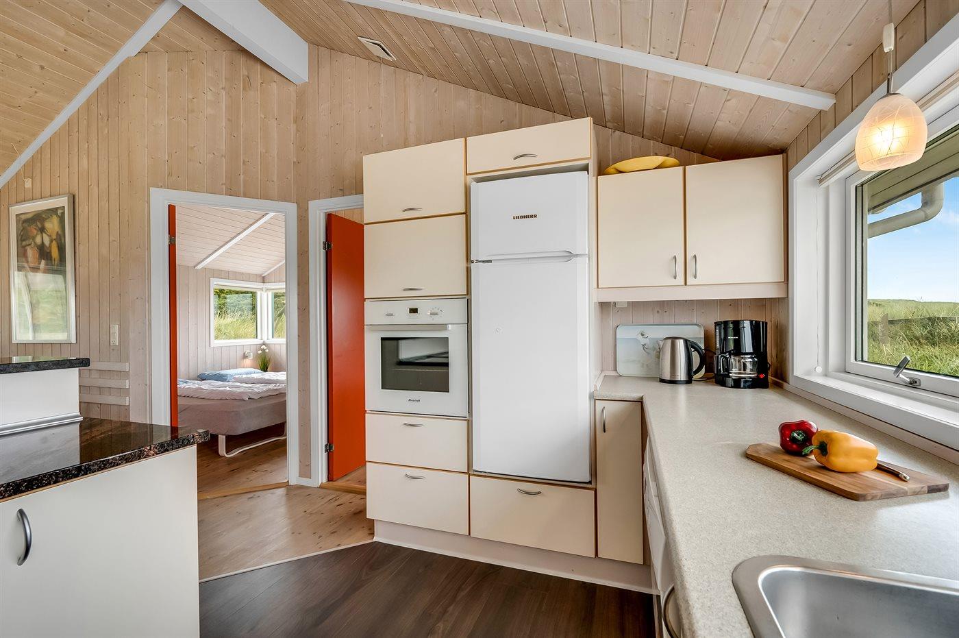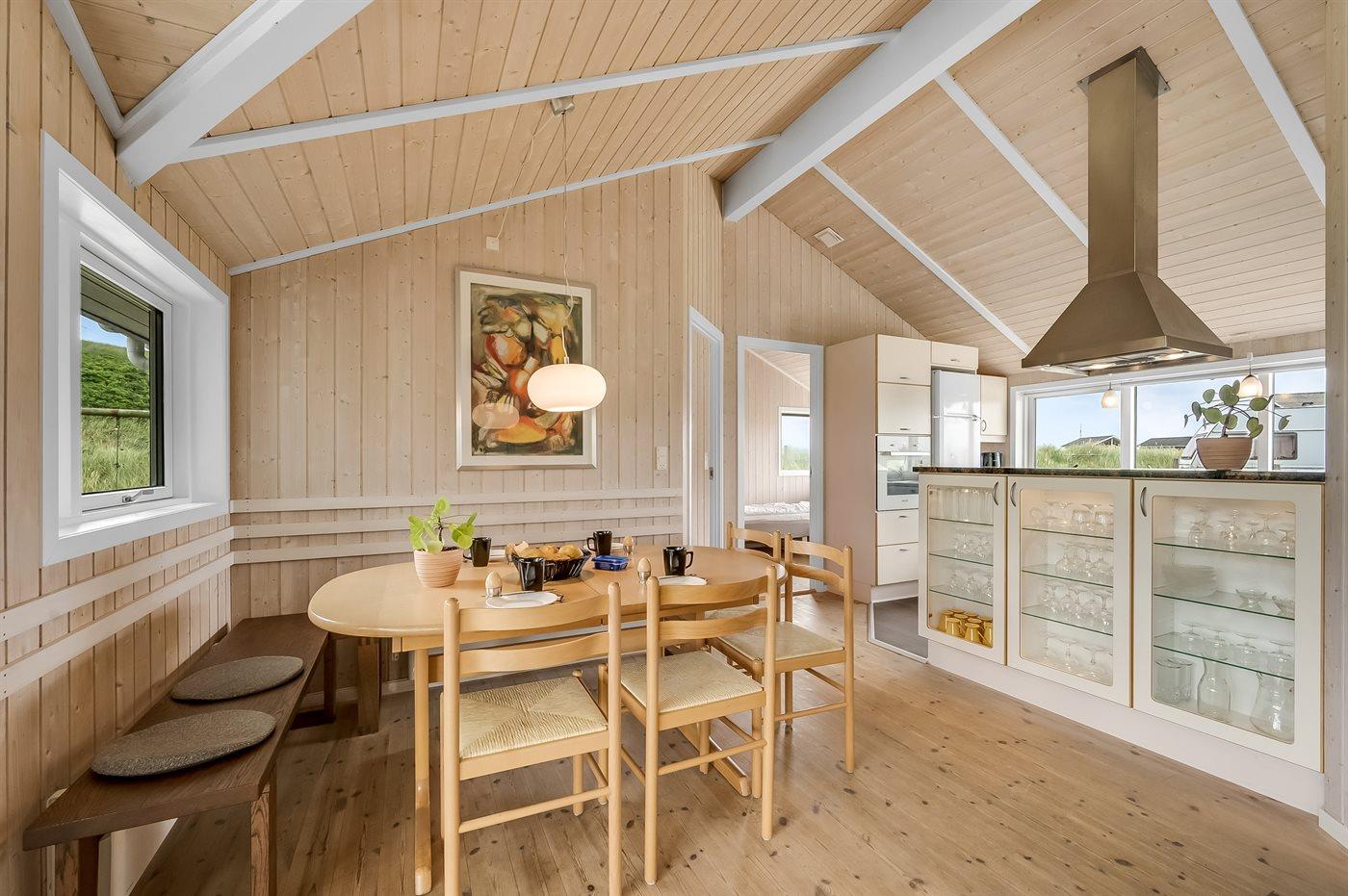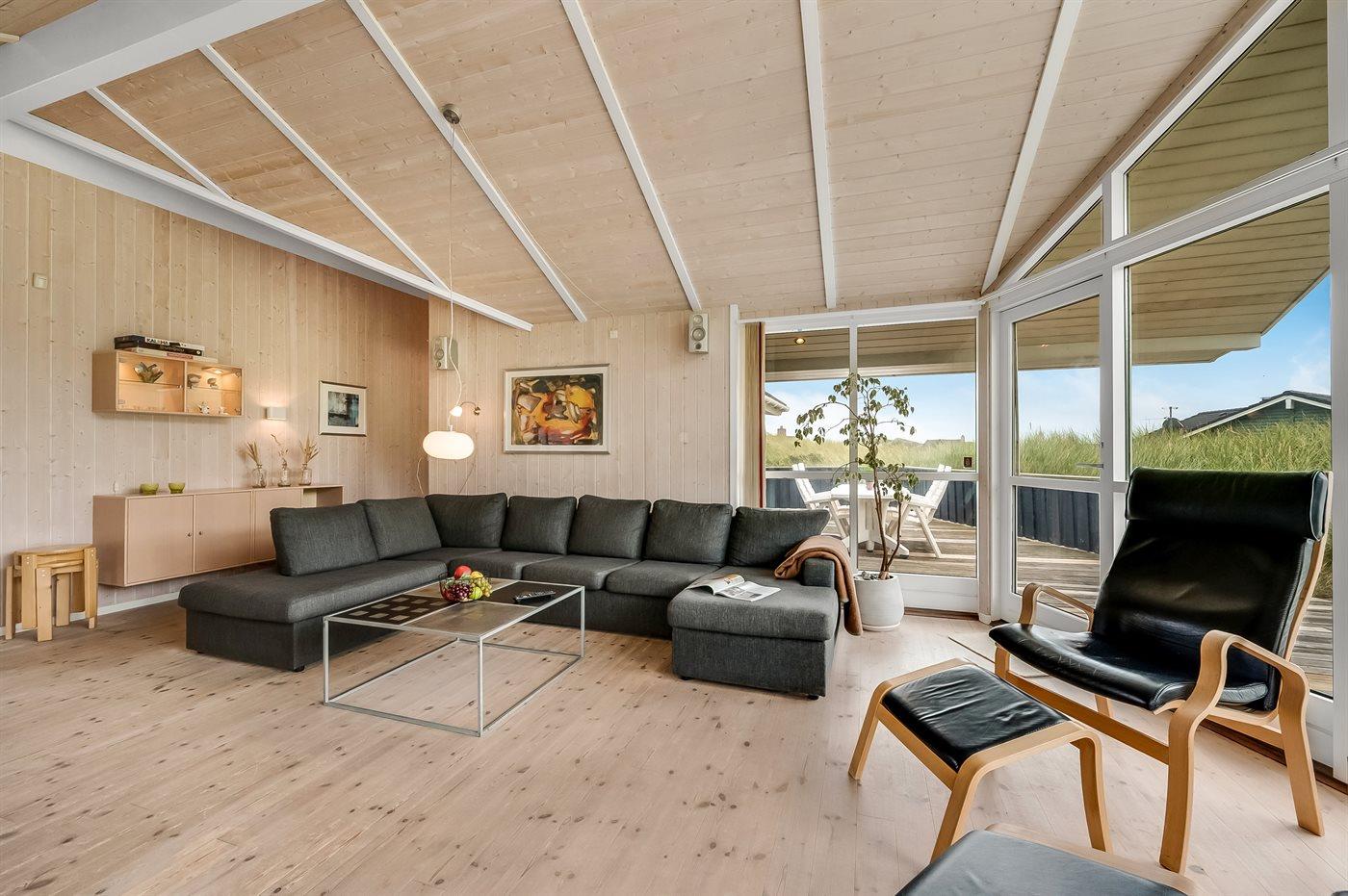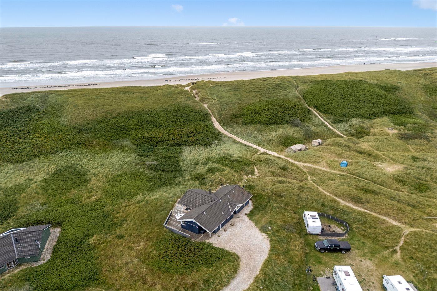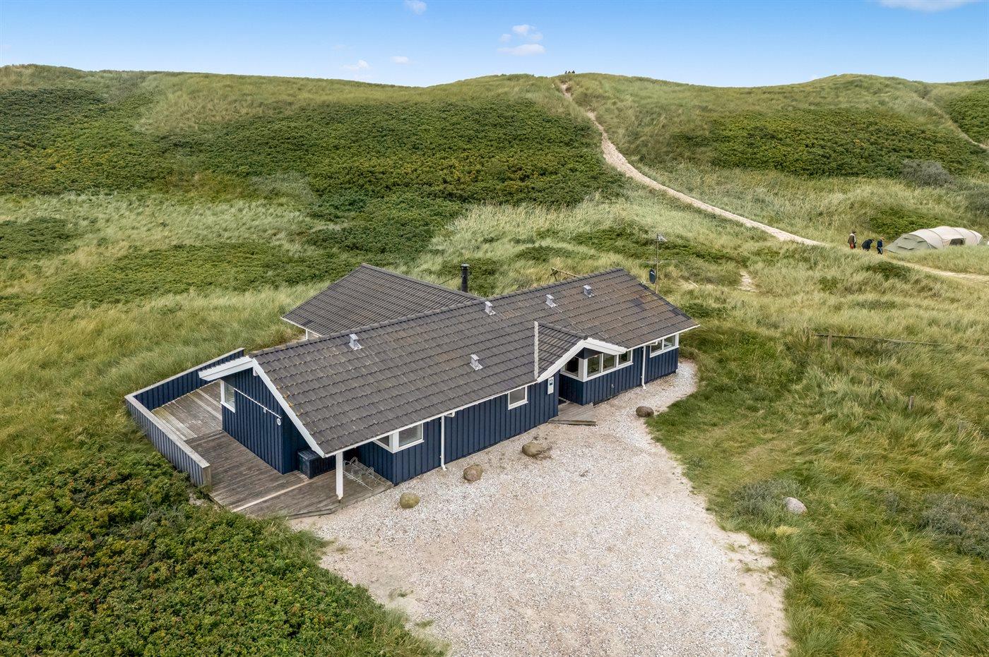 Möchtest du lieber die schöne Natur sowie den Klang und den Duft der Nordsee genießen, bietet die südwestlich ausgerichtete, große und teilweise überdachte Terrasse viele Möglichkeiten. Hier wirst du dich ganz sicher mit der Natur verbunden fühlen. Wenn Kinder mit im Urlaub sind, können sie draußen spielen, wo es eine Schaukel und einen Sandkasten gibt. Mit der Nordsee auf der anderen Seite der Düne kannst du die schöne dänische Westküste bei jedem Wetter genießen.