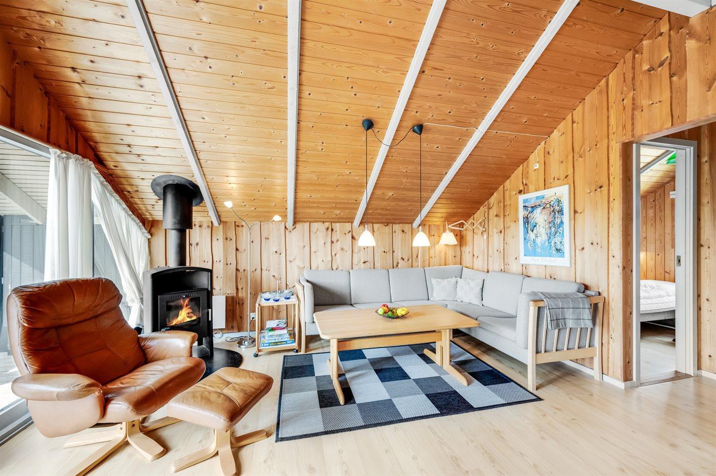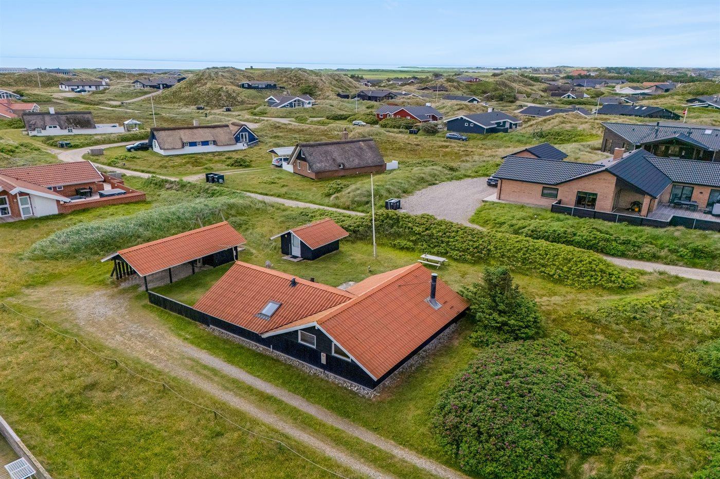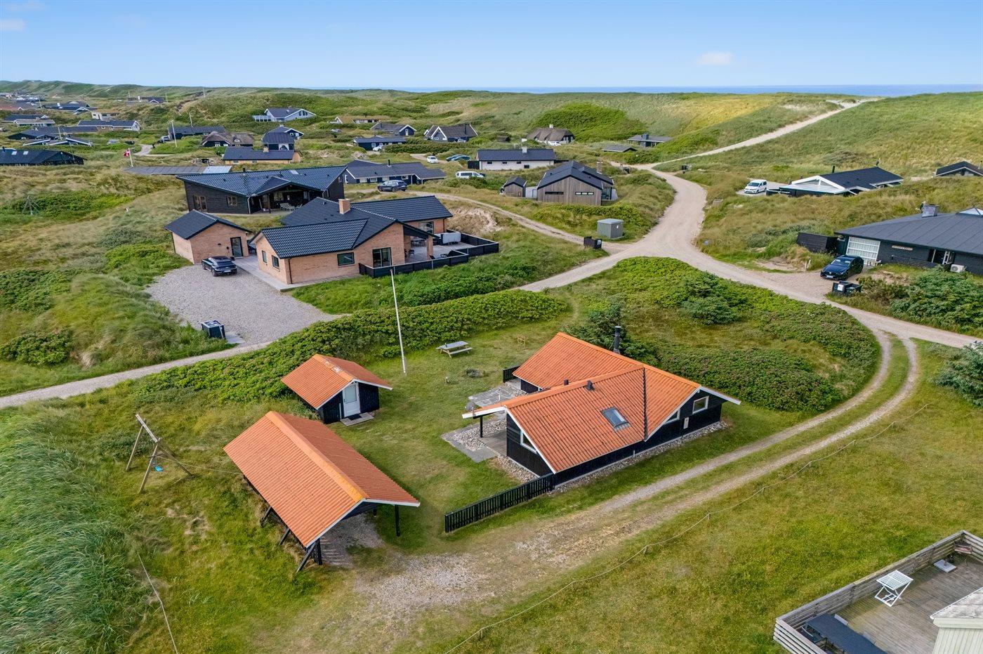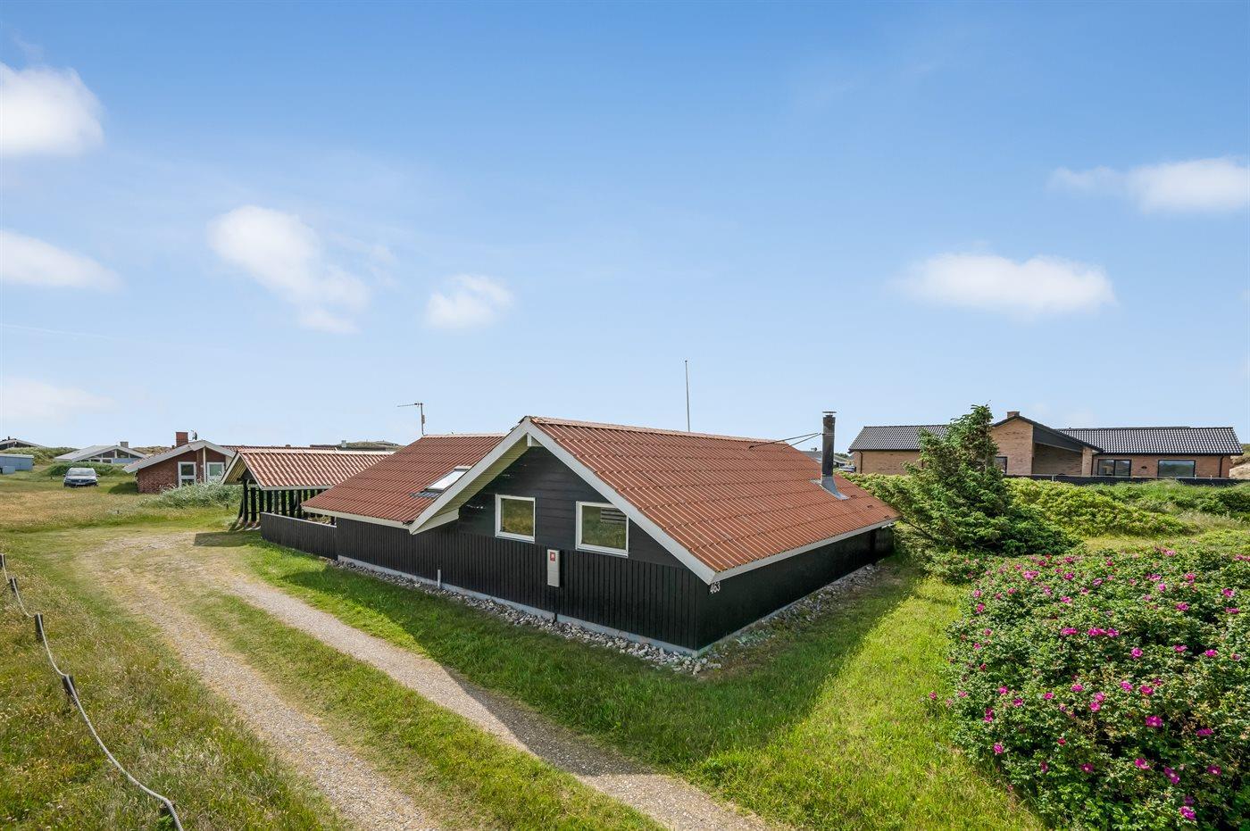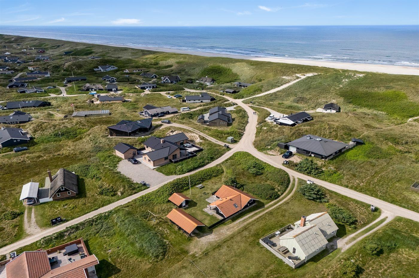 Träumst du davon, deinen Urlaub in einem hellen und gemütlichen Ferienhaus zu verbringen – nur 100 Meter von der wunderschönen, rauschenden Nordsee entfernt? Dann kann dieses Ferienhaus deine Träume wahr werden lassen. Der helle und gemütliche Wohn- und Essbereich im dänischen Stil lädt zum Entspannen und gemütlichen Beisammensein ein. Auf der großen, bequemen Couch kannst du dich mit einem guten Buch zurücklehnen, während im Hintergrund das Feuer im Kaminofen knistert. Vom Wohnzimmer aus hast du direkten Zugang zur großen, teils überdachten Holzterrasse und zum schönen Dünengrundstück. Mit Blick auf die Dünen kannst du hier entspannen, spielen oder mit dem Hund herumtollen. Das Ferienhaus liegt in der Nähe des charmanten Fischerortes Hvide Sande, wo du frischen Fisch kaufen, ein leckeres Mittagessen genießen oder in kleinen Läden shoppen kannst. Wenn du lieber einen aktiven Urlaub verbringen möchtest, findest du gute Möglichkeiten zum Wandern oder Radfahren auf Naturwegen, die sich durch Dünen und Ferienhausgebiete schlängeln. Die Region ist außerdem für ihre guten Surfbedingungen bekannt – sowohl an der Nordsee als auch am Ringkøbing Fjord.