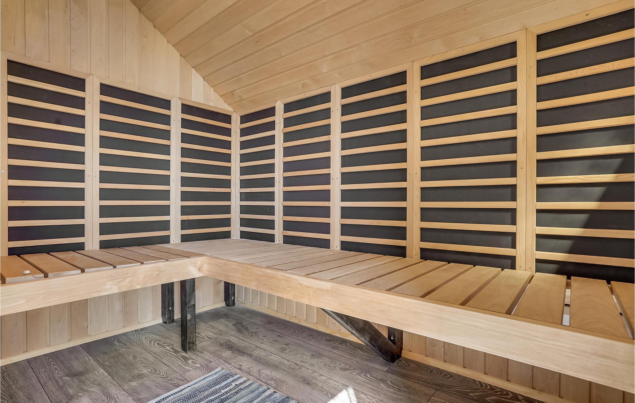 Dieses helle und persönlich eingerichtete Ferienhaus liegt auf einem großen offenen Grundstück, nicht weit von den Wellen des Ringkøbing Fjord und dem natürlichen Sandstrand entfernt. Vom Wohnraum aus gibt es einen direkten Zugang zu einer schönen offenen Terrasse, auf der Sie sich in der Sonne baden, Ihre Nickerchen machen oder einfach nur den Wolkenformationen zusehen können. Lassen Sie Ihre Abende bei einem Gläschen Wein ausklingen, während sich die jungen Gäste auf dem Grundstück vergnügen. Der Wohnraum dieses Hauses überzeugt hauptsächlich mit seiner Geräumigkeit, dem Komfort und der heimeligen Atmosphäre, wo Sie persönliche Dekorationen, stilvolle und moderne Möbel vorfinden werden. Mit eigener Sauna und einem Whirlpool haben Sie Ihren eigenen Wellnessbereich vor Ort und können sich nach einem langen Tag im Wasser oder in der Wärme entspannen.
