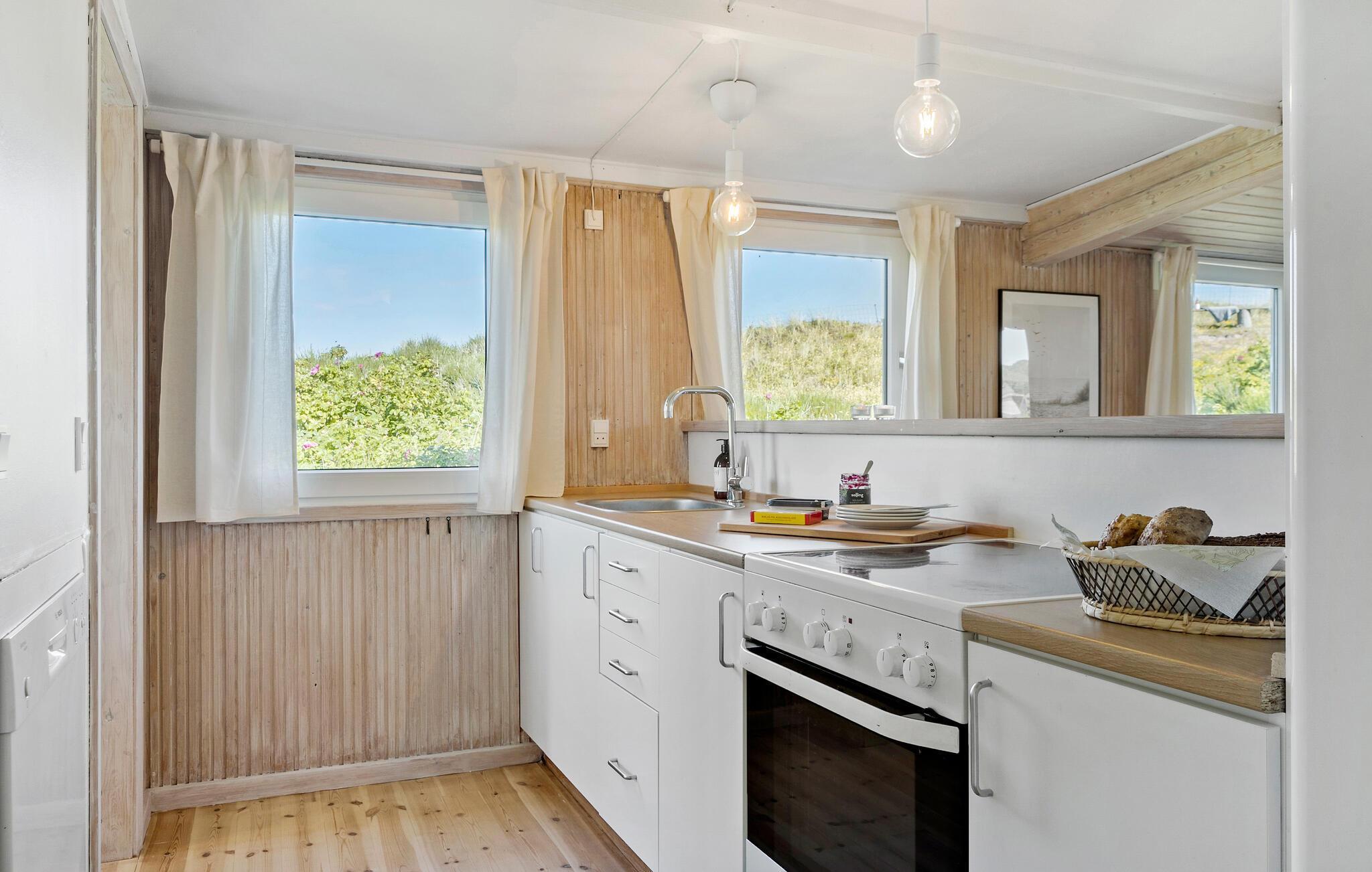 Ihr Ferienhaus in Årgab besticht durch seine gemütliche Atmosphäre und die fantastische Lage inmitten der Dünenlandschaft zwischen dem Ringkøbing Fjord auf der einen Seite und der Nordseeküste auf der anderen. Die verschiedenen Bereiche in Ihrem Ferienhaus sind getrennt, bilden aber dennoch eine harmonische Einheit. Im Wohnzimmer können Sie sich auf dem bequemen Sofa entspannen und den herrlichen Blick durch die großen Fenster genießen. Der Essbereich ist einladend und bietet ausreichend Platz für gemeinsame Mahlzeiten. Die praktische Küche ermöglicht es Ihnen, Ihre kulinarischen Fähigkeiten unter Beweis zu stellen und köstliche Mahlzeiten zuzubereiten.