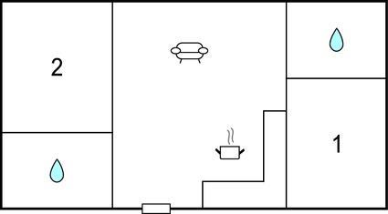 Badezimmer (nr. 1) - WC. Warmes und kaltes Wasser. Dusche