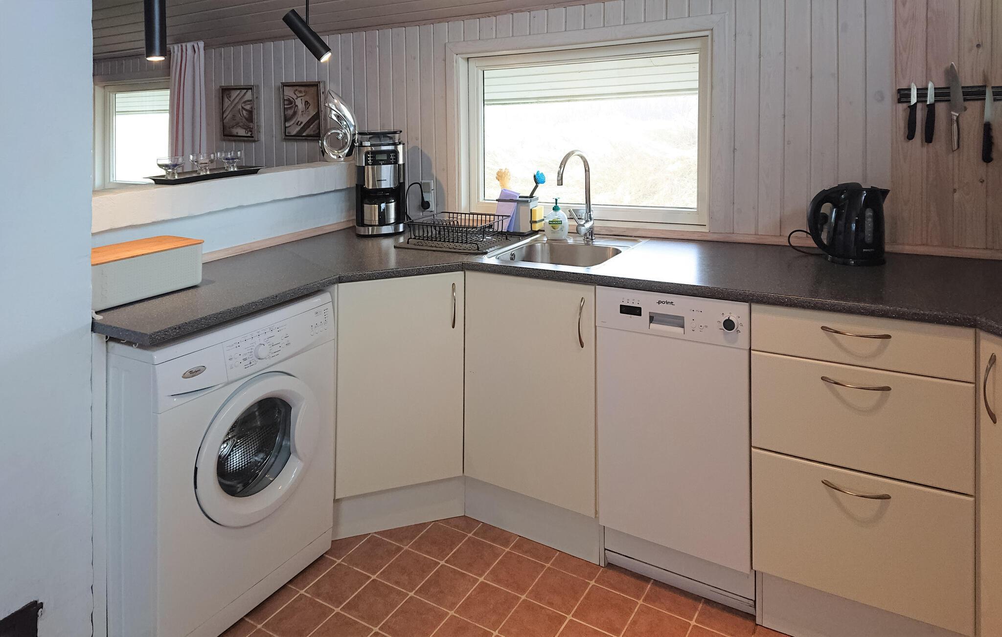 Ihre ganze Familie kann sich auf ruhige Urlaubstage in Westjütland freuen. In diesem gemütlichen Haus haben Sie viel Gelegenheit, sich drinnen zu entspannen und in der Natur neue Energie zu tanken. Das Haus liegt in einer schönen Dünenlandschaft und hat große Fenster mit Blick in die Umgebung. Setzen Sie sich mit einem guten Buch ins Wohnzimmer und genießen Sie das Licht und das gemütliche Knistern des Kaminfeuers im Holzofen.